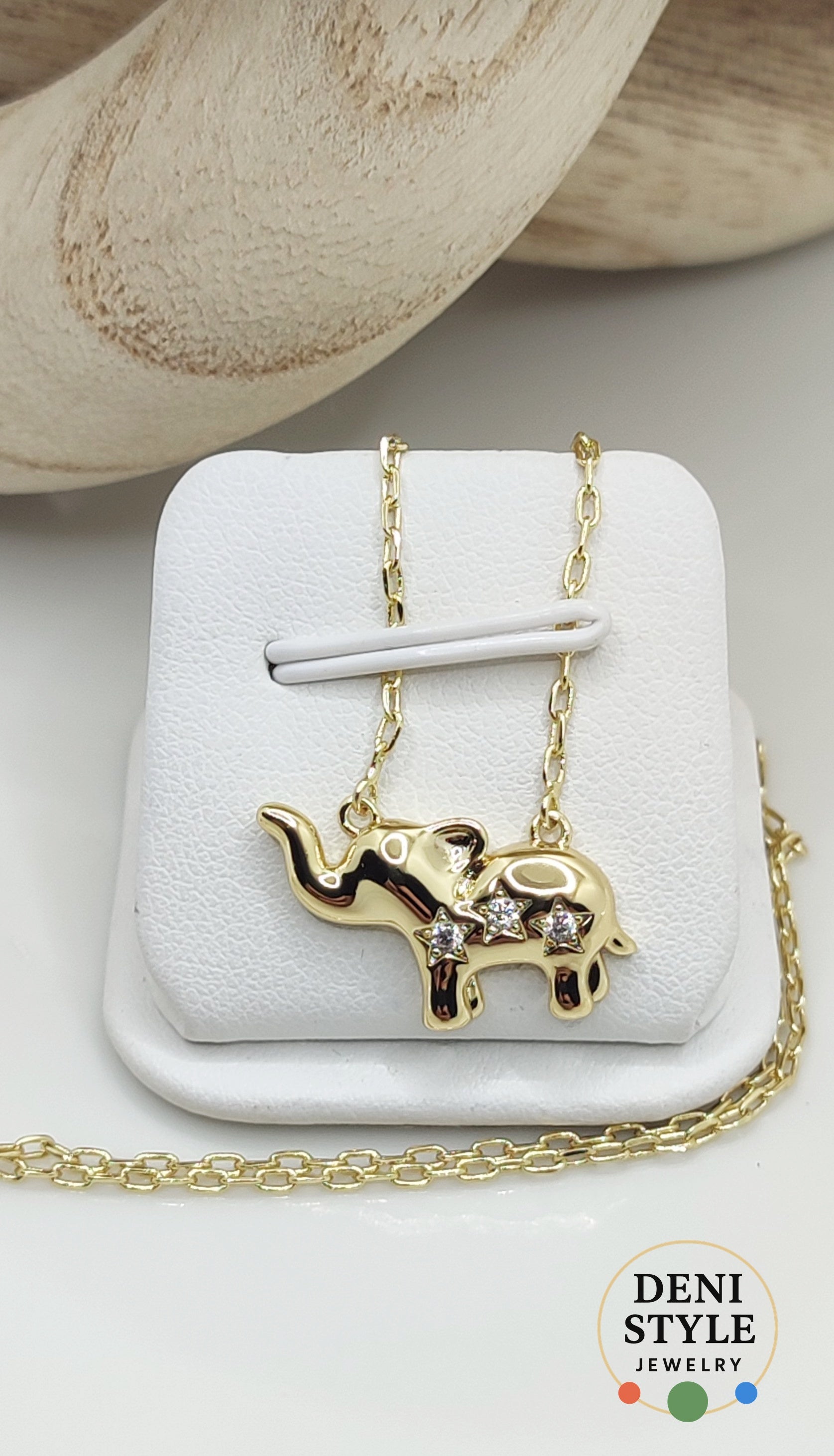 Finoman megmunkált, csillogó elefánt medállal készült nyaklánc, amely a szerencsét, a védelmet és a kitartást szimbolizálja. 14K arany színű bevonata tartós fényt biztosít, nem kopik és nem színeződik el. Antiallergén kivitelének köszönhetően érzékeny bőrre is biztonságosan viselhető. Könnyen állítható hosszúságú, kényelmes viselet mindennapokra és különleges alkalmakra.