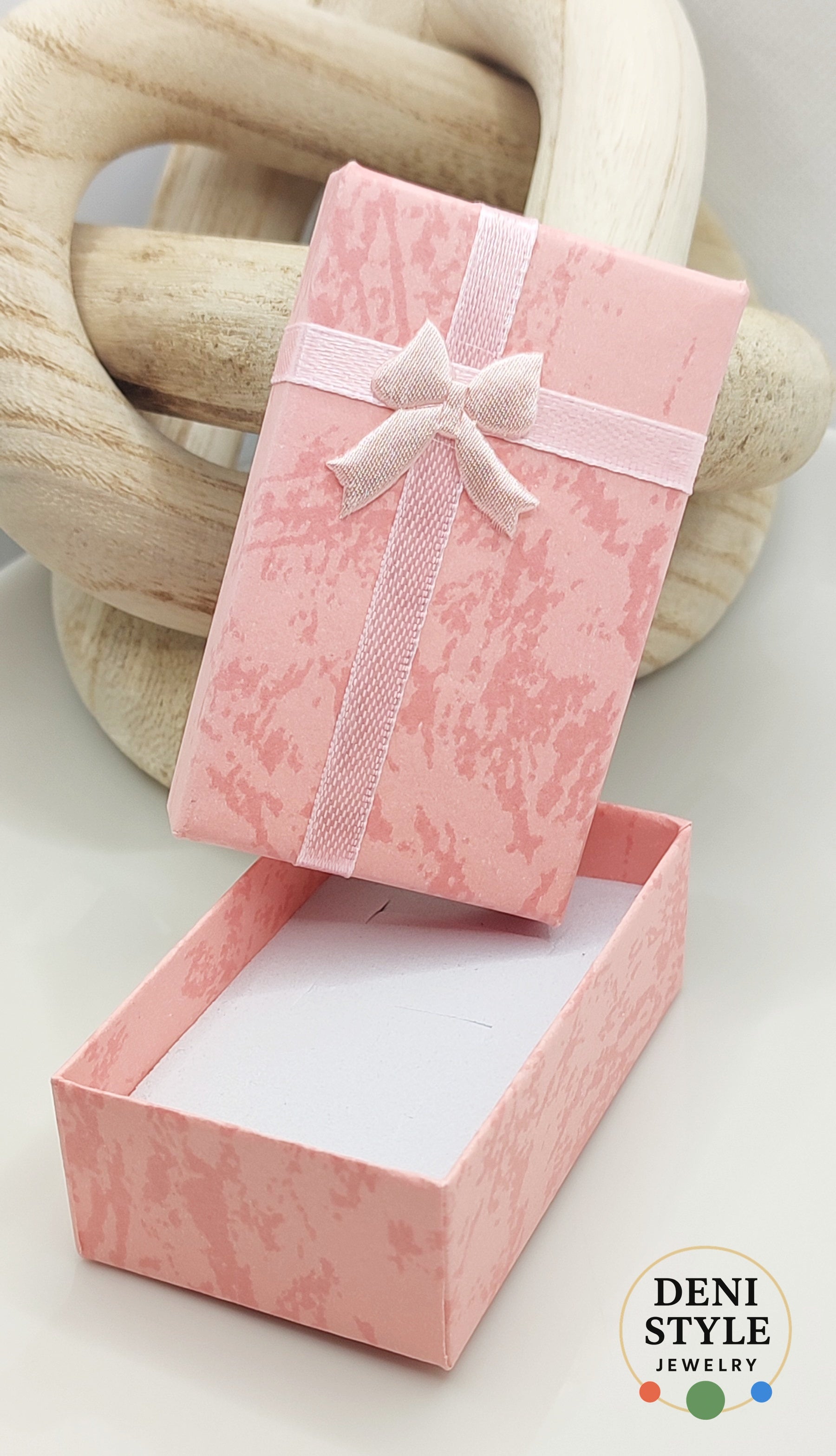 Elegáns, rózsaszín ékszerdoboz masnis díszítéssel, amely tökéletes választás ajándékba szánt ékszerek csomagolásához. Kellemes, pasztell árnyalata kifinomult megjelenést kölcsönöz, a puha belső rész pedig óvja az ékszereket a sérüléstől.