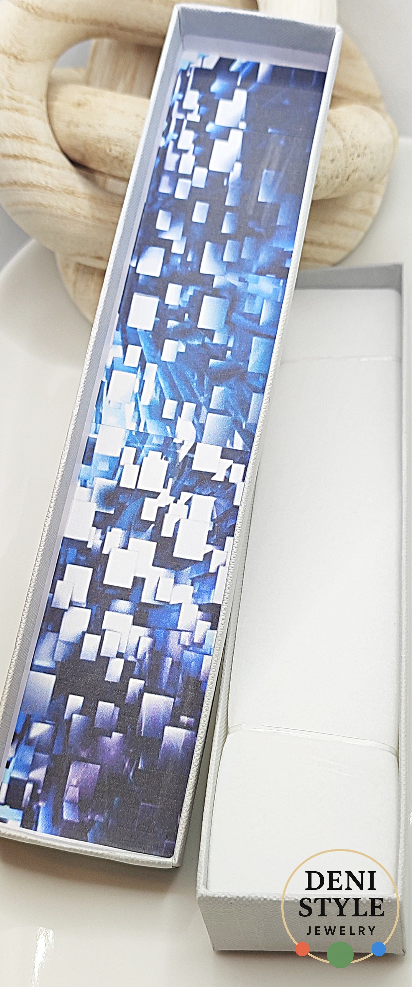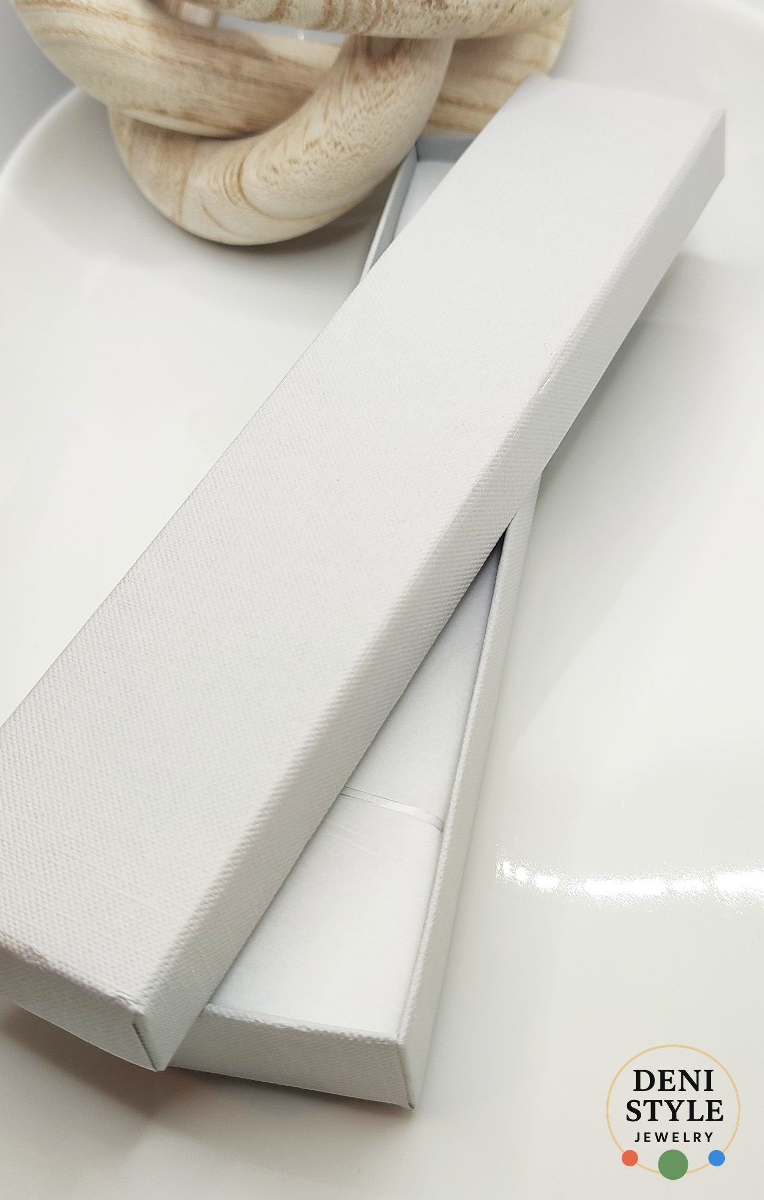 Modern, letisztult megjelenésű világosszürke ékszerdoboz, amely tökéletes választás karkötők, láncok vagy elegáns ajándékékszerek csomagolásához. Strapabíró karton anyagból készült, belső bélése biztonságosan tartja az ékszert, miközben kifinomult megjelenést biztosít.