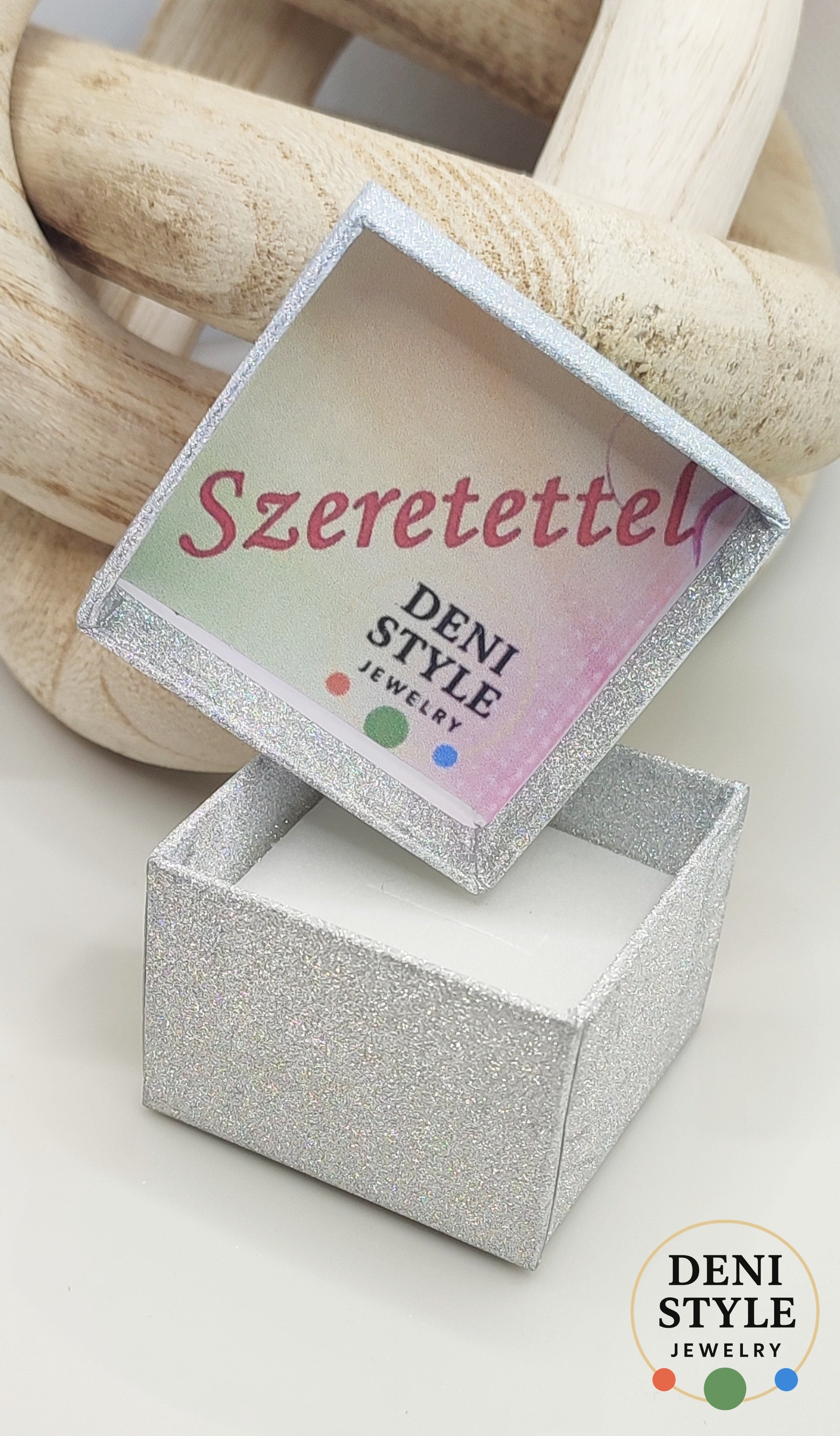 Exkluzív, csillogó ezüstszínű ékszerdoboz, amelyben az ajándék igazán különleges megjelenést kap. A belső tetőn elhelyezett „Szeretettel” felirat még személyesebbé teszi, így tökéletes választás ajándékba szánt ékszerekhez. Tartós, prémium minőségű kartonból készült, belső béléssel.