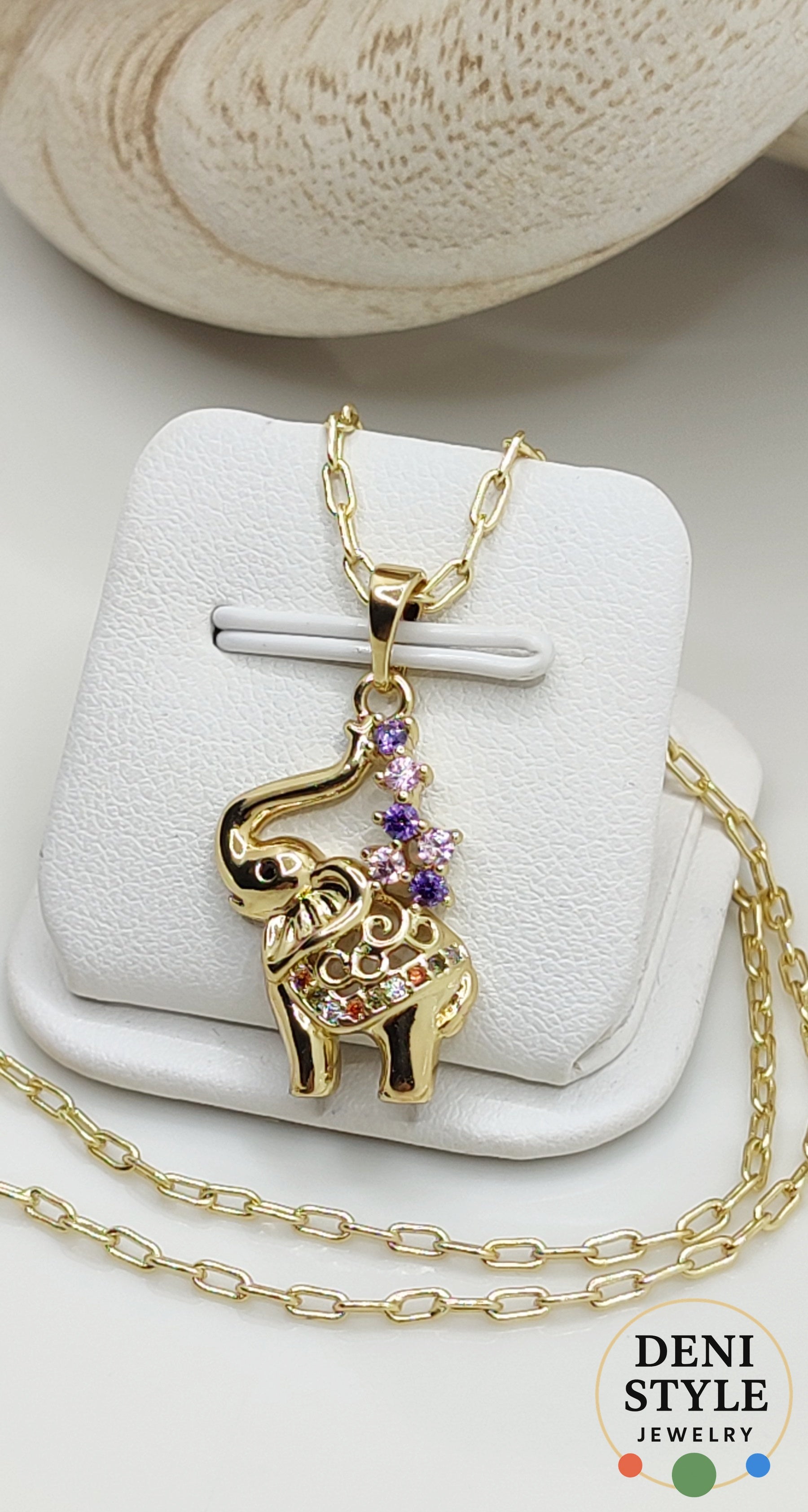 Ez a nyaklánc a szerencse és az erő szimbólumát rejti magában. Az arany színű elefánt medál színes kövekkel díszítve játékos, mégis elegáns megjelenést kölcsönöz. Igazi különlegesség, amely feldobja a mindennapokat, és csodás ajándék lehet bárkinek, aki hisz a pozitív energiákban.