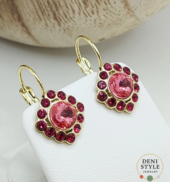 A piros és rózsaszín kristályok elegáns harmóniája teszi igazán nőiessé ezt a fülbevalót. A középen ragyogó kristályt apró kövek ölelik körbe, melyek a szenvedély és a gyengédség egyensúlyát sugallják. Látványos, mégis ízléses kiegészítő ünnepi és hétköznapi viselethez egyaránt.