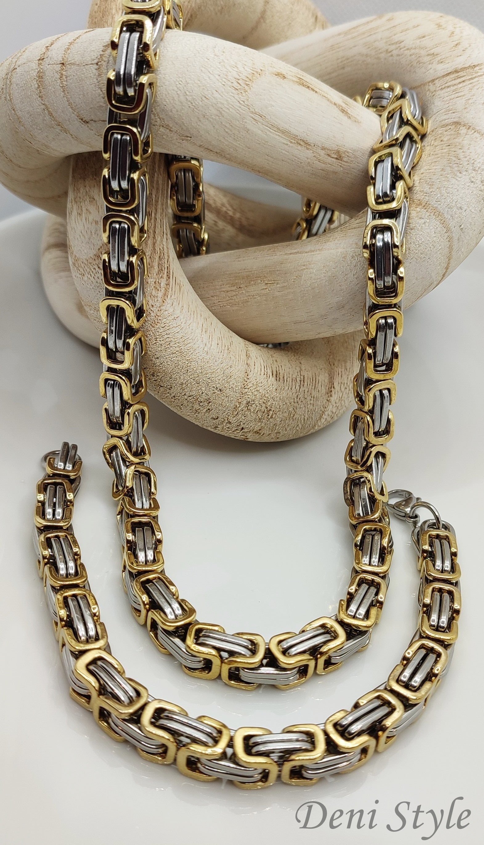 Fényes arany-ezüst nemesacél nyaklánc és karkötő kombináció 💫