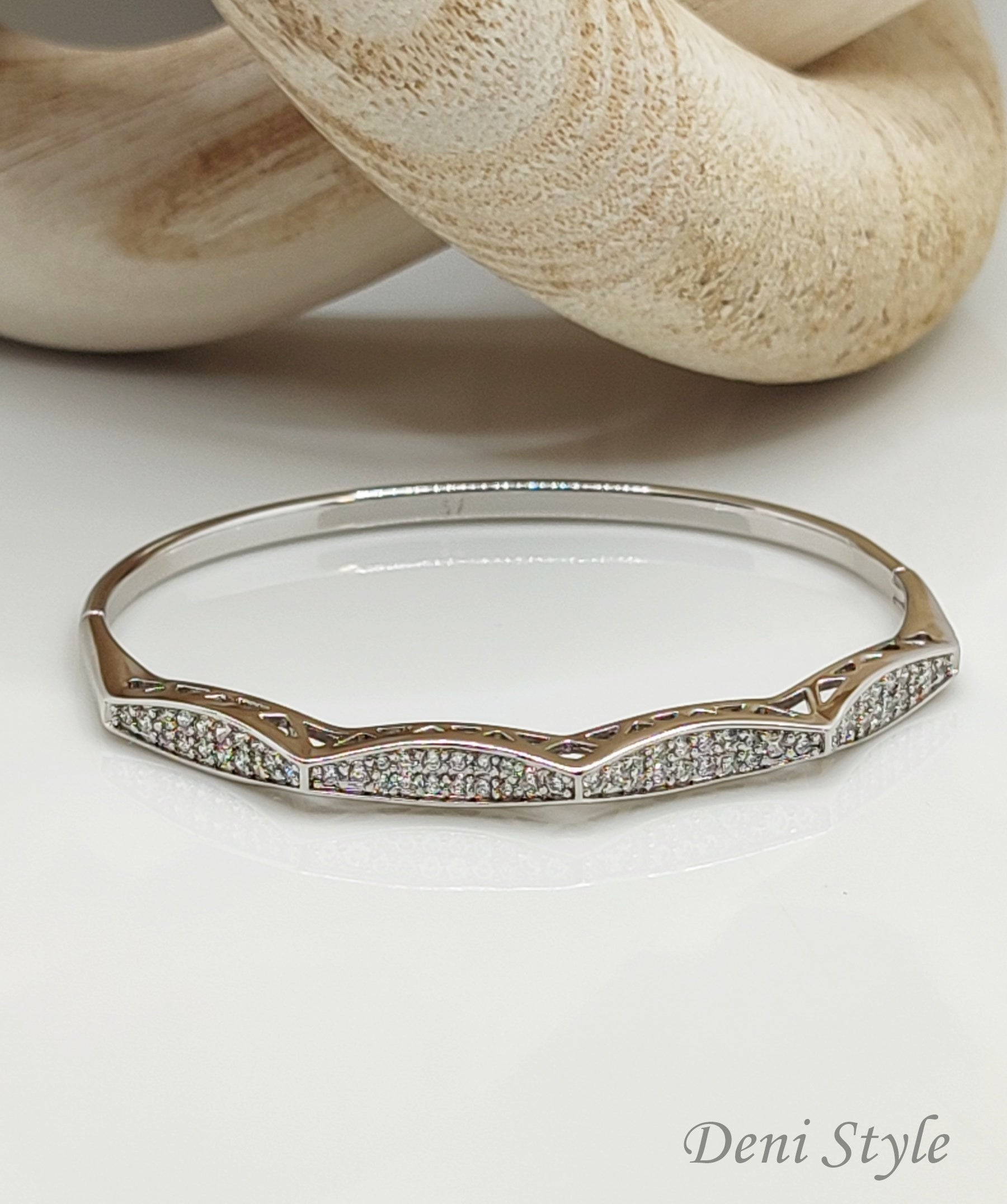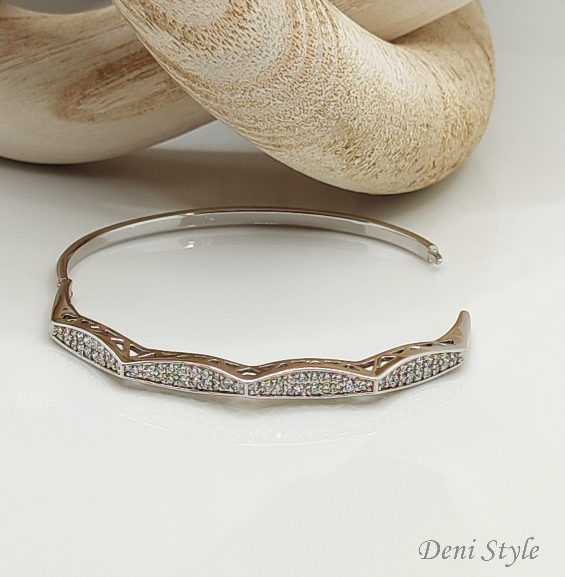 A karkötő a nőies elegancia megtestesítője. A finom hullámvonalakba foglalt ragyogó kövek a fény minden rezdülését visszatükrözik, így kifinomult csillogást kölcsönöznek a megjelenésnek. Tökéletes választás ünnepi alkalmakra, de hétköznapokra is elegáns kiegészítő lehet. Antiallergén kivitelben készült, így fémérzékenyek számára is biztonságos viselet.