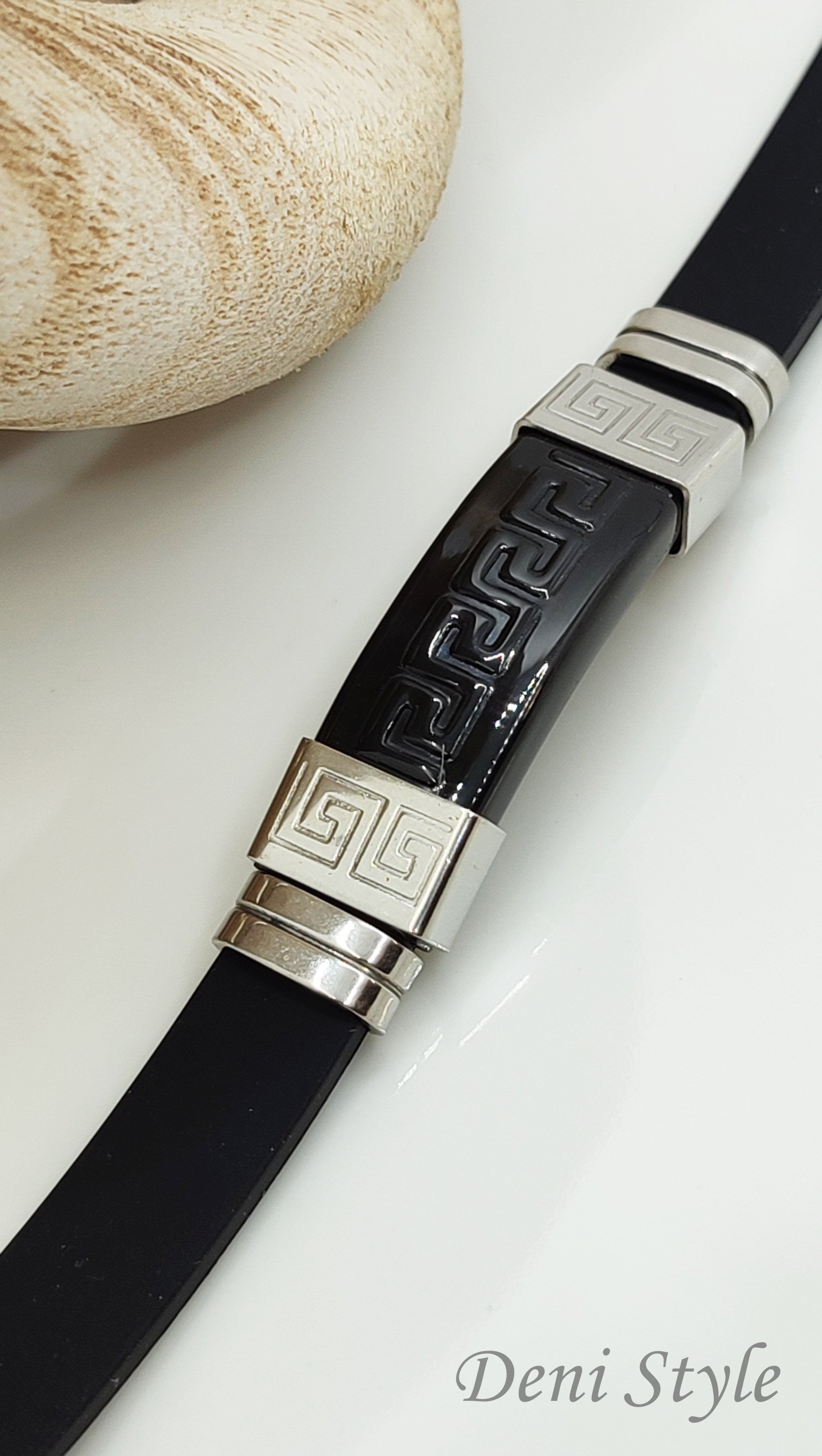Fekete kaucsuk és nemesacél kombináció, görög mintával díszítve 🔱