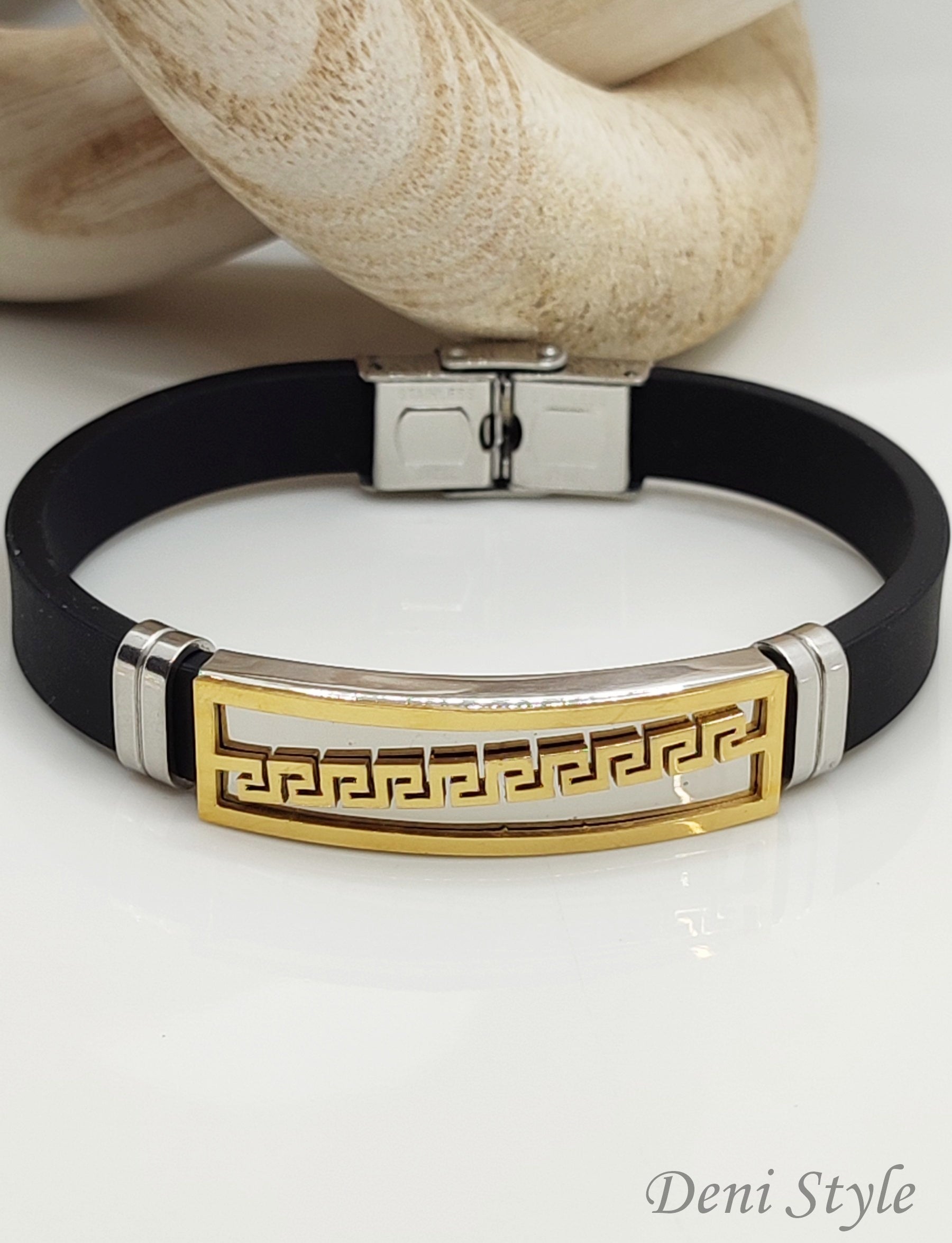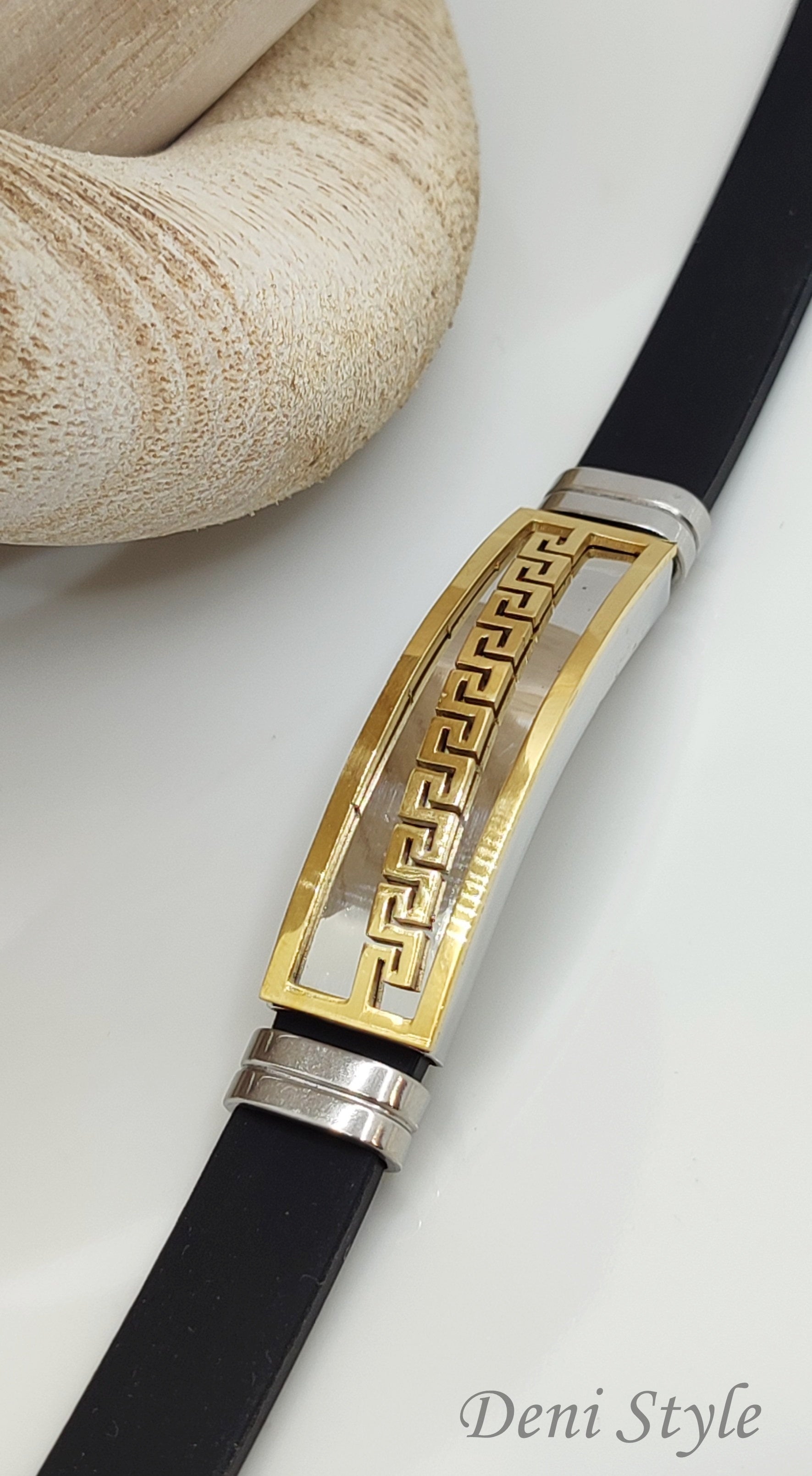 Ez az arany-fekete nemesacél-kaucsuk karkötő görög mintás részlettel igazán különleges darab! 🇬🇷🖤