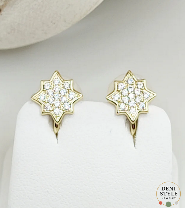 Ragyogó csillag formájú klipszes fülbevaló, mely minden mozdulatnál fényesen csillan. Kényelmesen viselhető, mégis látványos darab, amely különleges alkalmakra és hétköznapokra egyaránt stílusos választás. Elegáns, csillogó kövekkel készült.