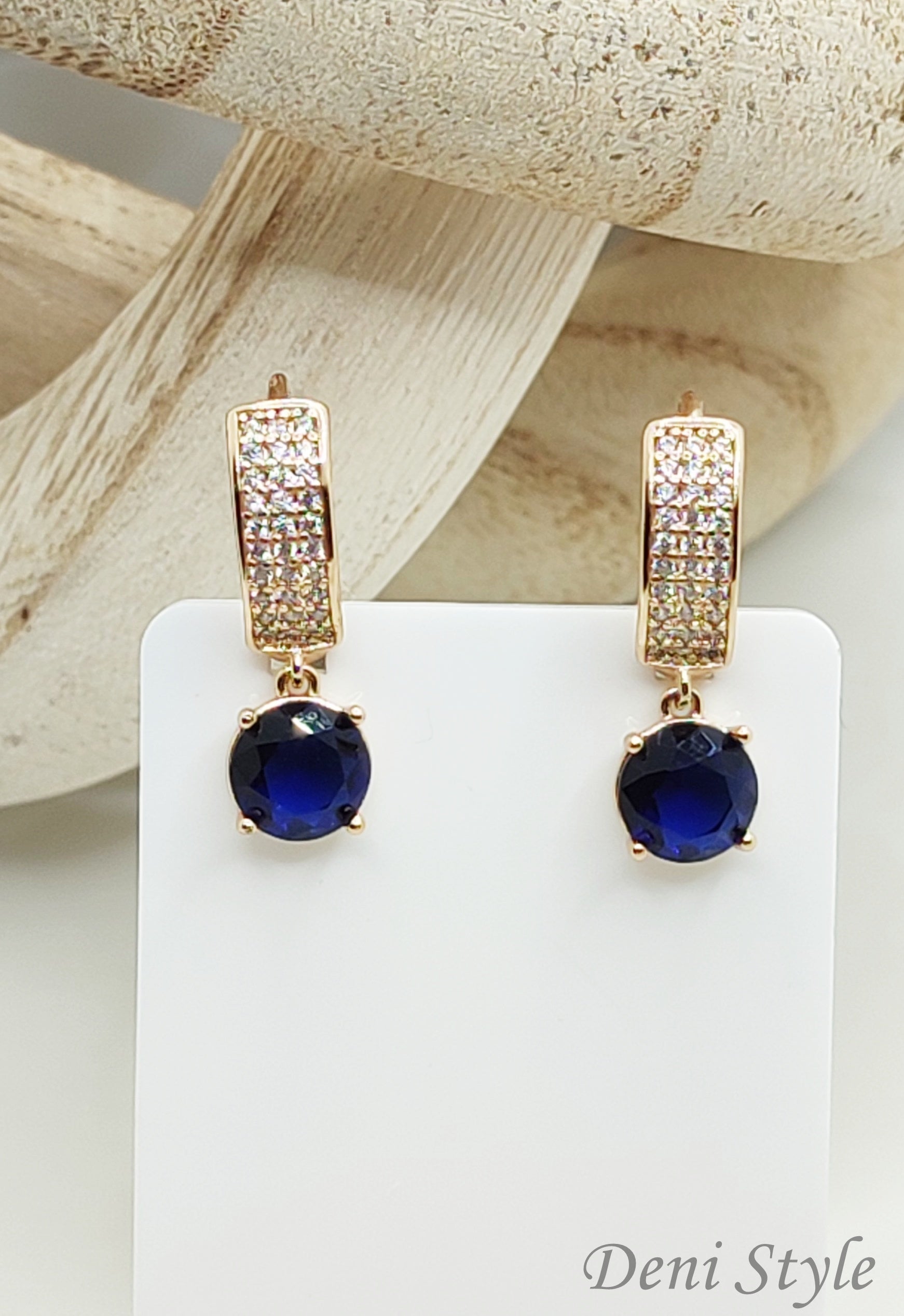 Elegáns fülbevaló, amelyet sötétkék kő és ragyogó kristályok díszítenek. Különleges kialakítása nőies és kifinomult megjelenést biztosít, így hétköznapokra és alkalmakra egyaránt tökéletes választás. Antiallergén anyagból készült, érzékeny bőrűeknek is ideális.