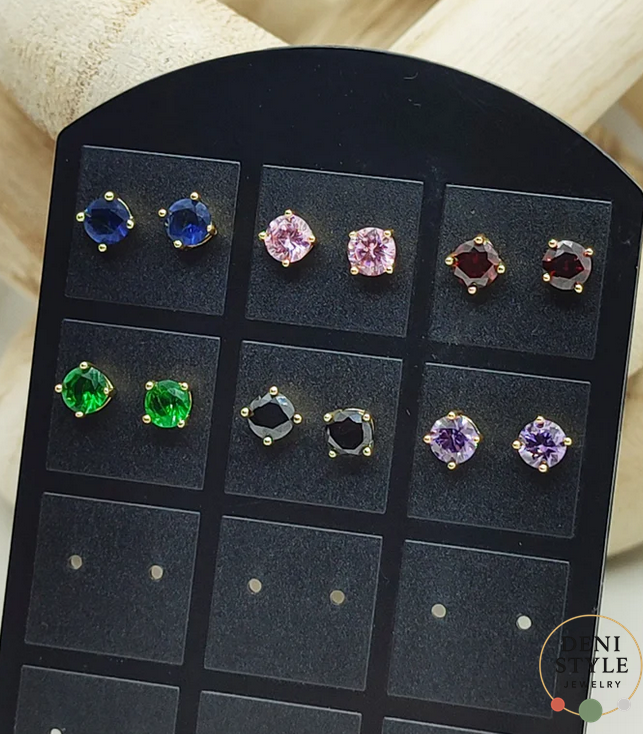 Klasszikus, apró köves fülbevaló több színben: rózsaszín, zöld, kék, piros, lila és fekete. Egyszerű, mégis elegáns kiegészítő, amely bármely öltözékhez illik. Antiallergén anyagból készült, így érzékeny bőrűek számára is biztonságos. Az ár egy párra értendő.