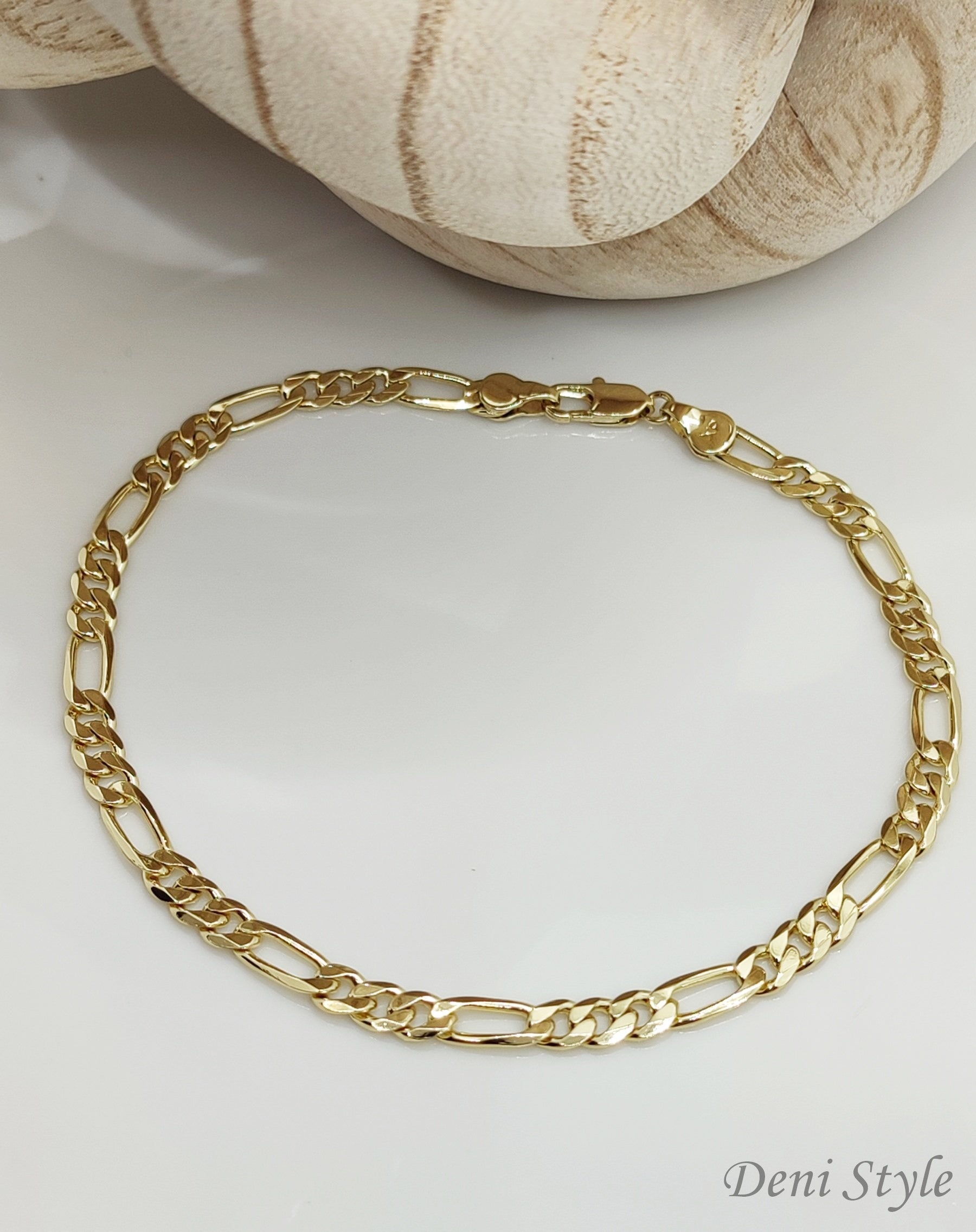 Arany színű karkötő klasszikus, váltakozó méretű láncszemekkel. Letisztult és időtlen megjelenése miatt tökéletes alapdarab, amely bármilyen stílushoz illik. Antiallergén kialakításának köszönhetően fémérzékenyek is biztonsággal viselhetik.