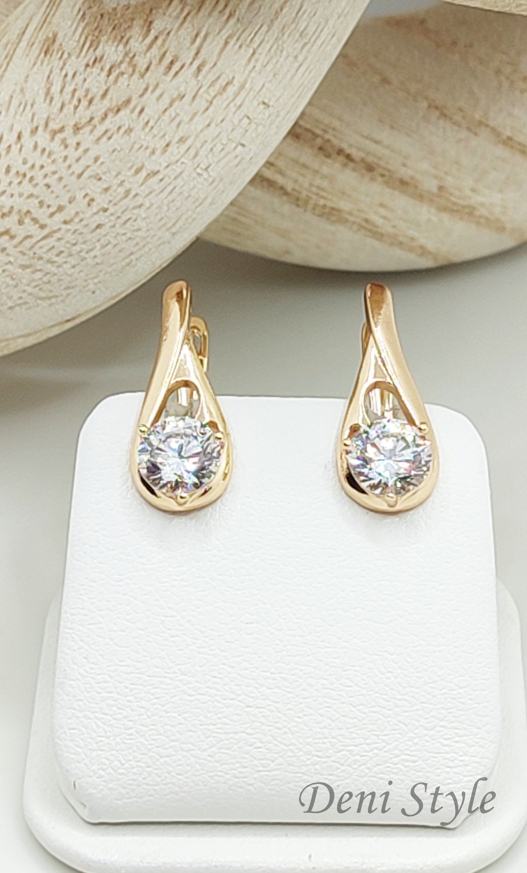 Elegáns arany színű fülbevaló, amelyet középen egy ragyogó kő tesz igazán különlegessé. Letisztult, mégis látványos formavilága minden alkalomhoz tökéletes választás. Könnyed viselete és klasszikus szépsége miatt hamar kedvenc ékszerré válhat.