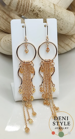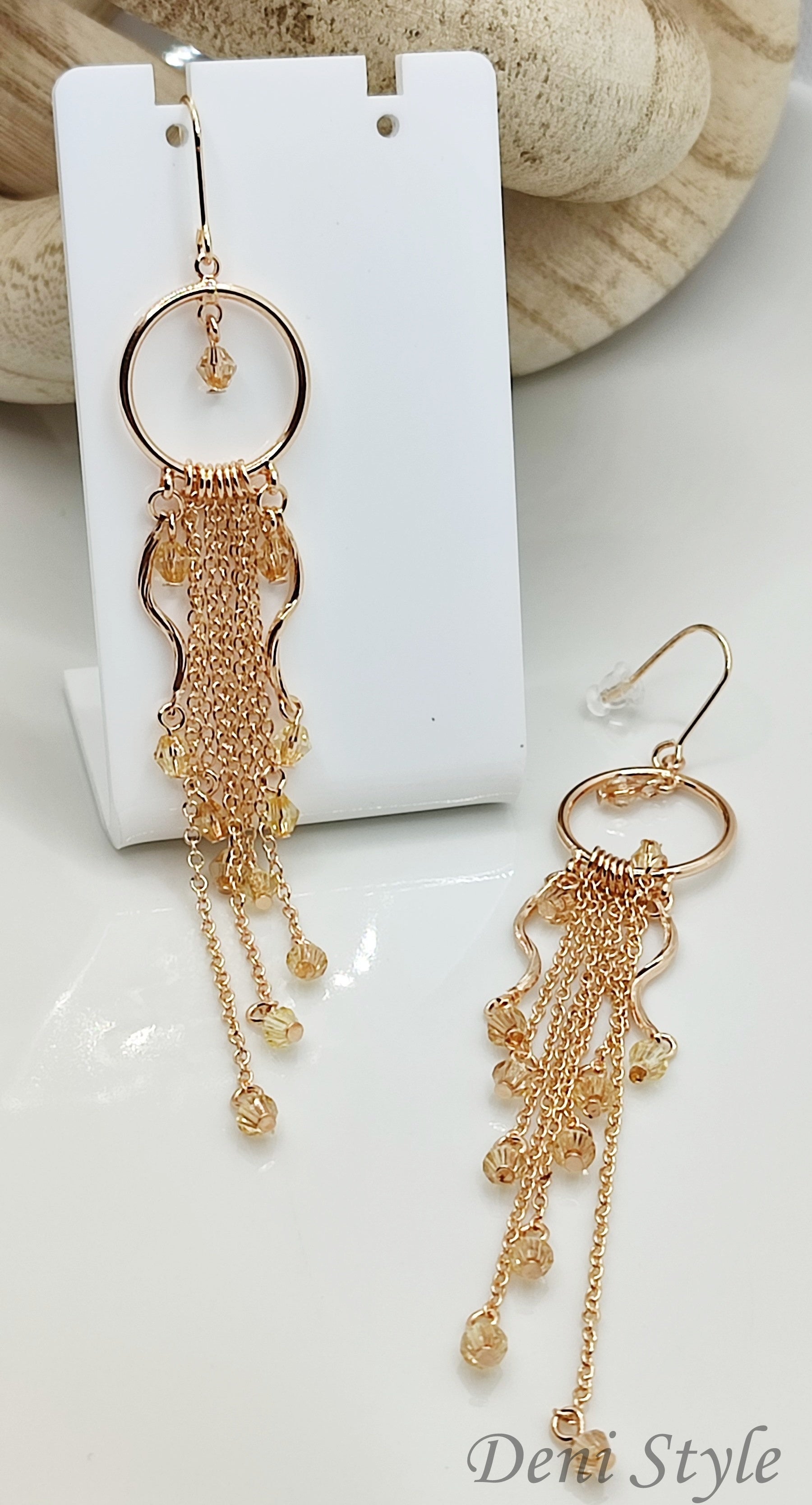 Látványos, 18 k színű láncos fülbevaló csillogó gyöngyökkel