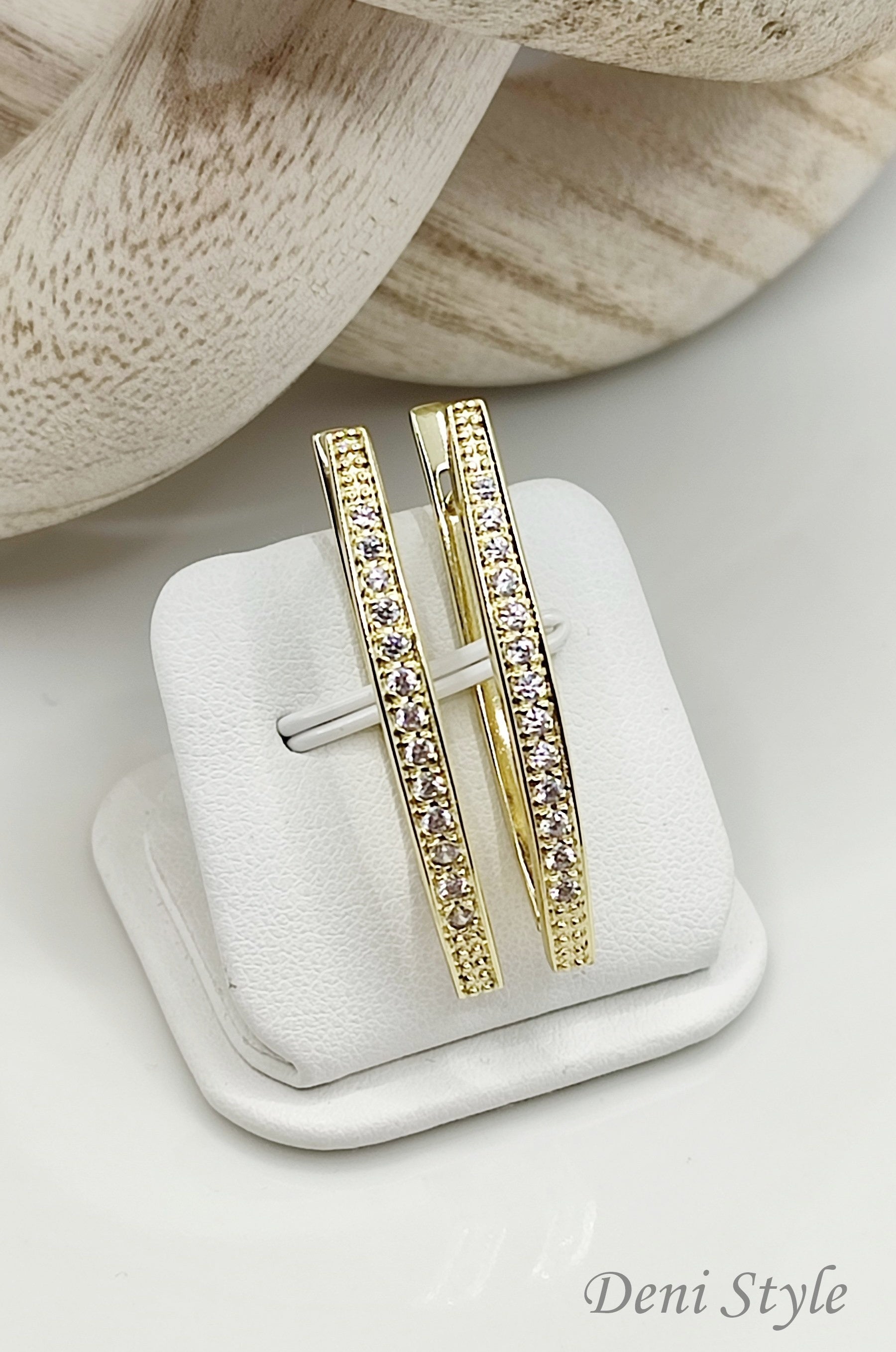 Kifinomult, ívelt forma és csillogó kövek teszik különlegessé ezt az antiallergén fülbevalót