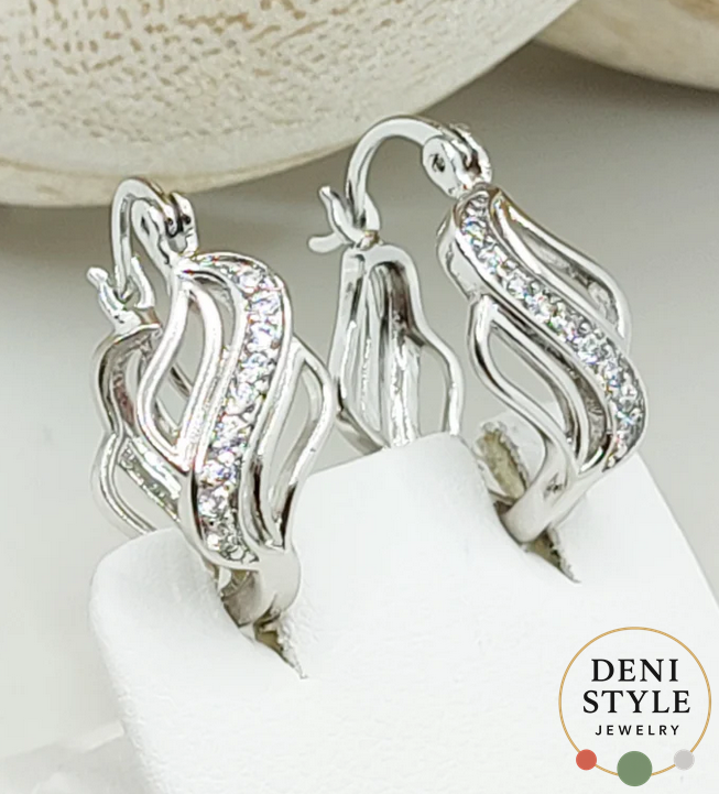 Ez a különleges, hullámvonalas fülbevaló kristályos díszítéssel igazán nőies megjelenést kölcsönöz