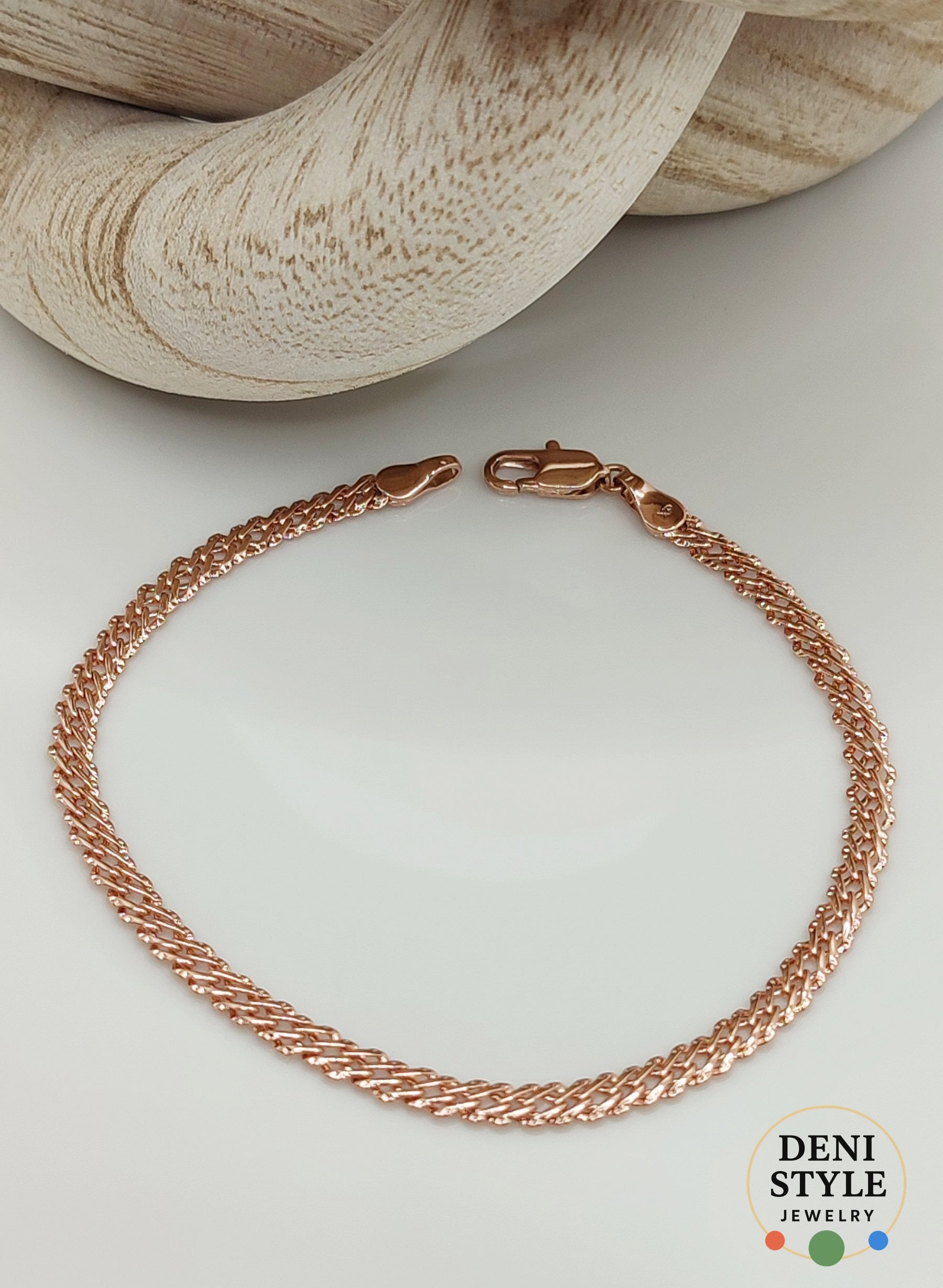 A Petra karkötő elegáns, finom fonású mintázatával a letisztult stílus kedvelőinek készült. 18K rosé arany színű, antiallergén anyagból készült, így hosszú távon is tartós és biztonságos viselet. Klasszikus formája és kifinomult fénye tökéletes kiegészítővé teszi mindennapi és alkalmi megjelenéshez egyaránt.