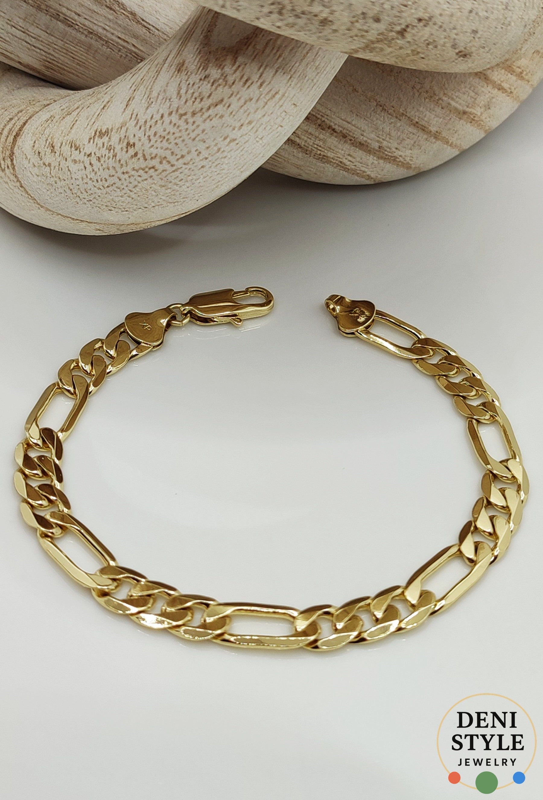 Klasszikus arany színű karkötő, amely időtlen eleganciát sugároz. A markáns, mégis kifinomult láncszemek tökéletes választássá teszik mindennapi viselethez és különleges alkalmakhoz egyaránt. Könnyedén kombinálható más ékszerekkel, de önmagában viselve is stílusos megjelenést biztosít.