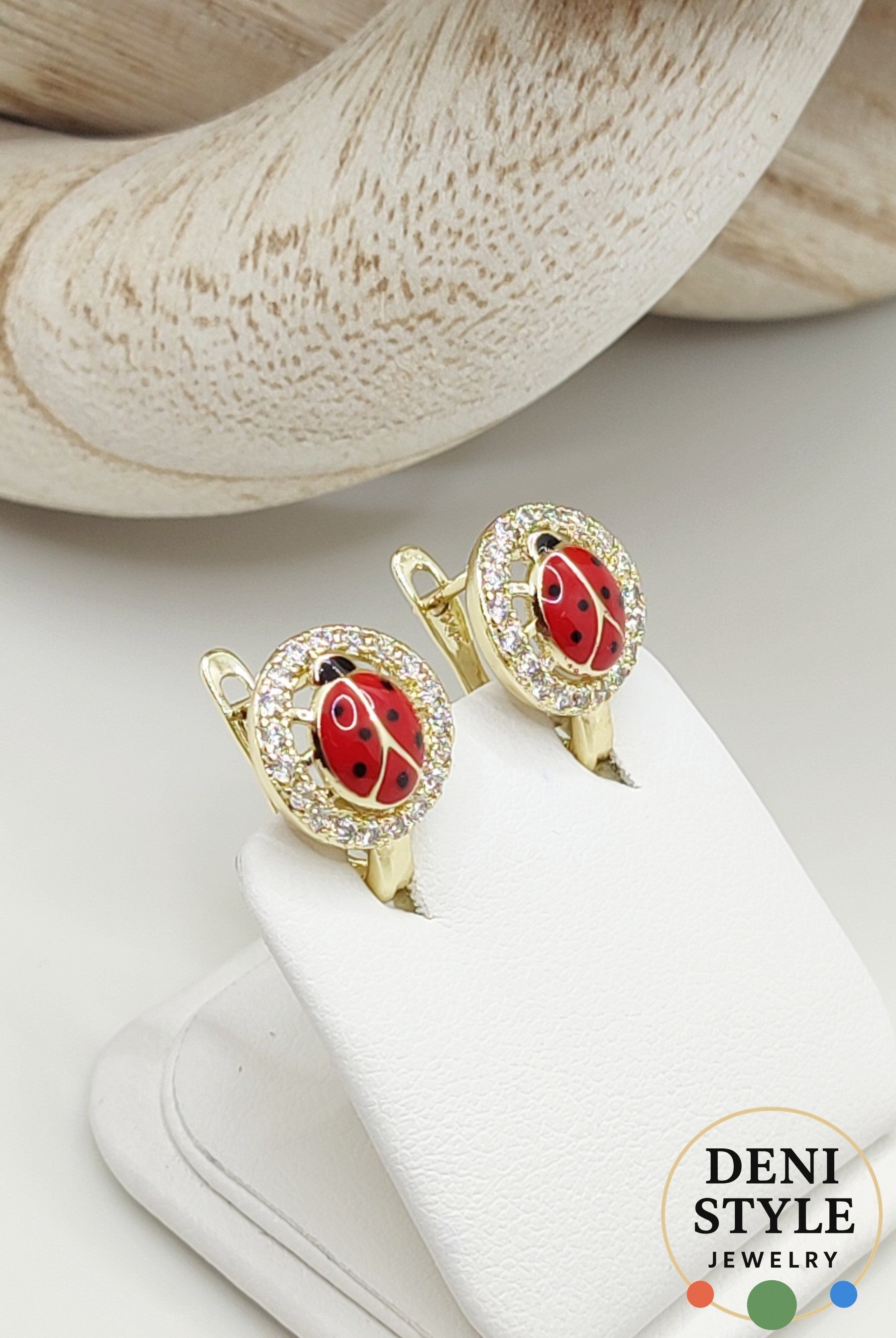 Ez a katicás gyermek fülbevaló vidám és kedves megjelenést ad a kicsiknek. Arany színű keretben apró kristályok ölelik körbe a piros-fekete katicát, amely játékos és bájos hangulatot sugároz. A biztonságos és kényelmes záródás kifejezetten gyermekek számára ideális választássá teszi. Mindennapi viselethez és különleges alkalmakra is tökéletes darab.