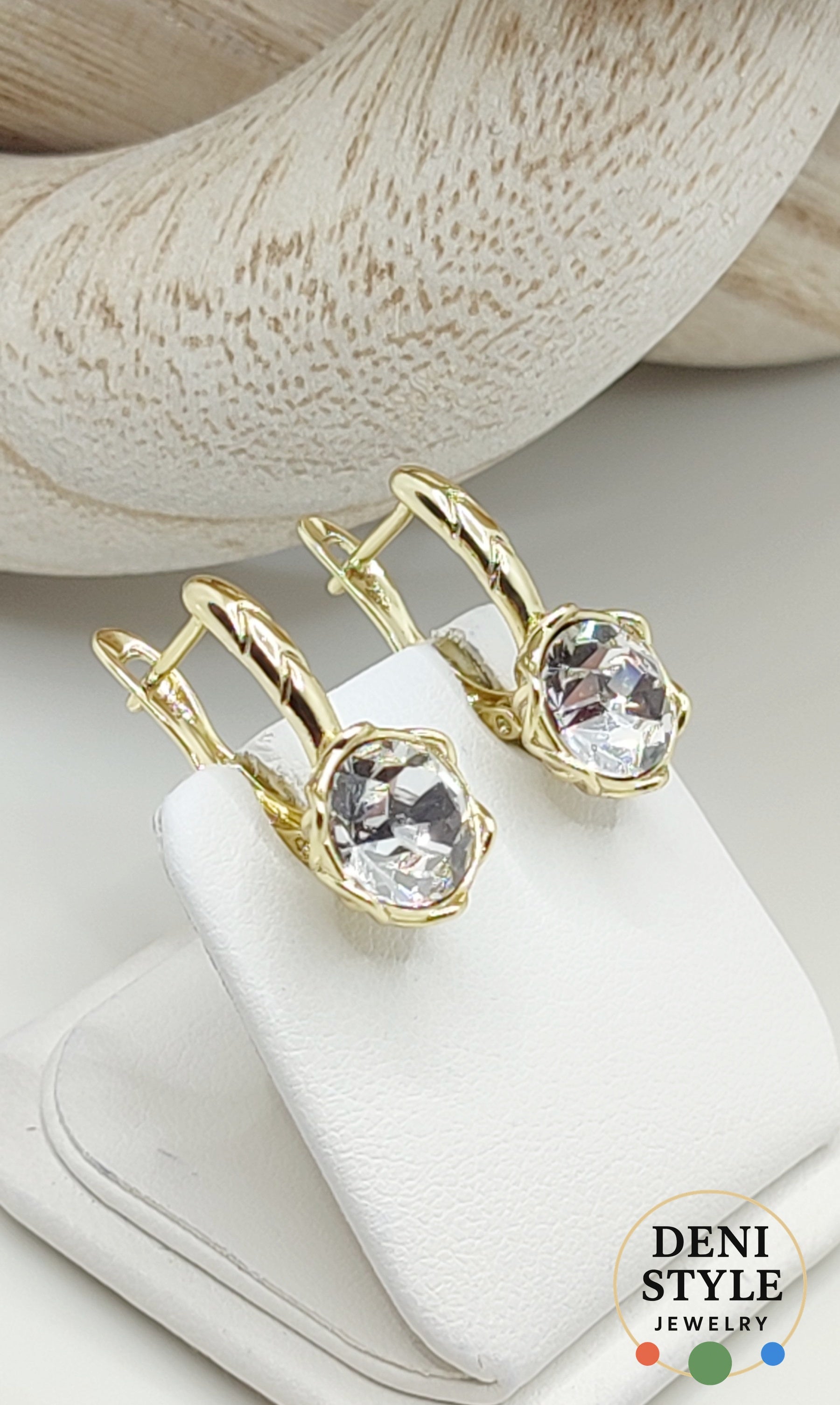 Elegáns aranyszínű fülbevaló, amelyet egy nagy, ragyogó kristály tesz igazán különlegessé. Klasszikus formája időtálló választás, miközben a kristály tiszta csillogása minden tekintetet magára vonz. Antiallergén anyagból készült, így kényelmes és biztonságos viselet.