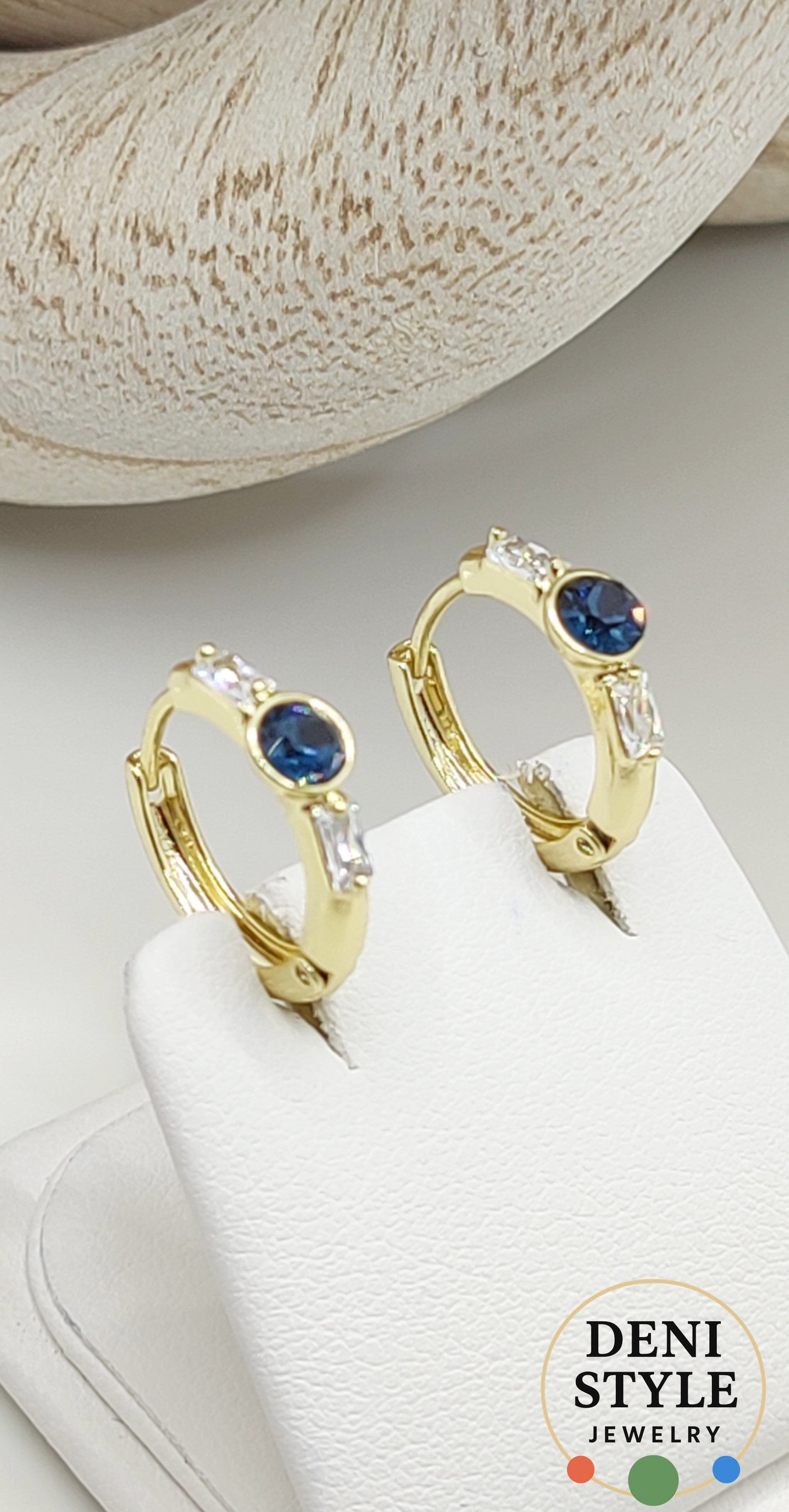 Ez a klasszikus arany színű karika fülbevaló a mélykék kő és a csillogó kristályok párosával különleges eleganciát sugároz. Letisztult, mégis feltűnő darab, amely tökéletes választás mindennapi viselethez és alkalmakra is. Antiallergén kialakítása érzékeny bőrűek számára is ideálissá teszi.