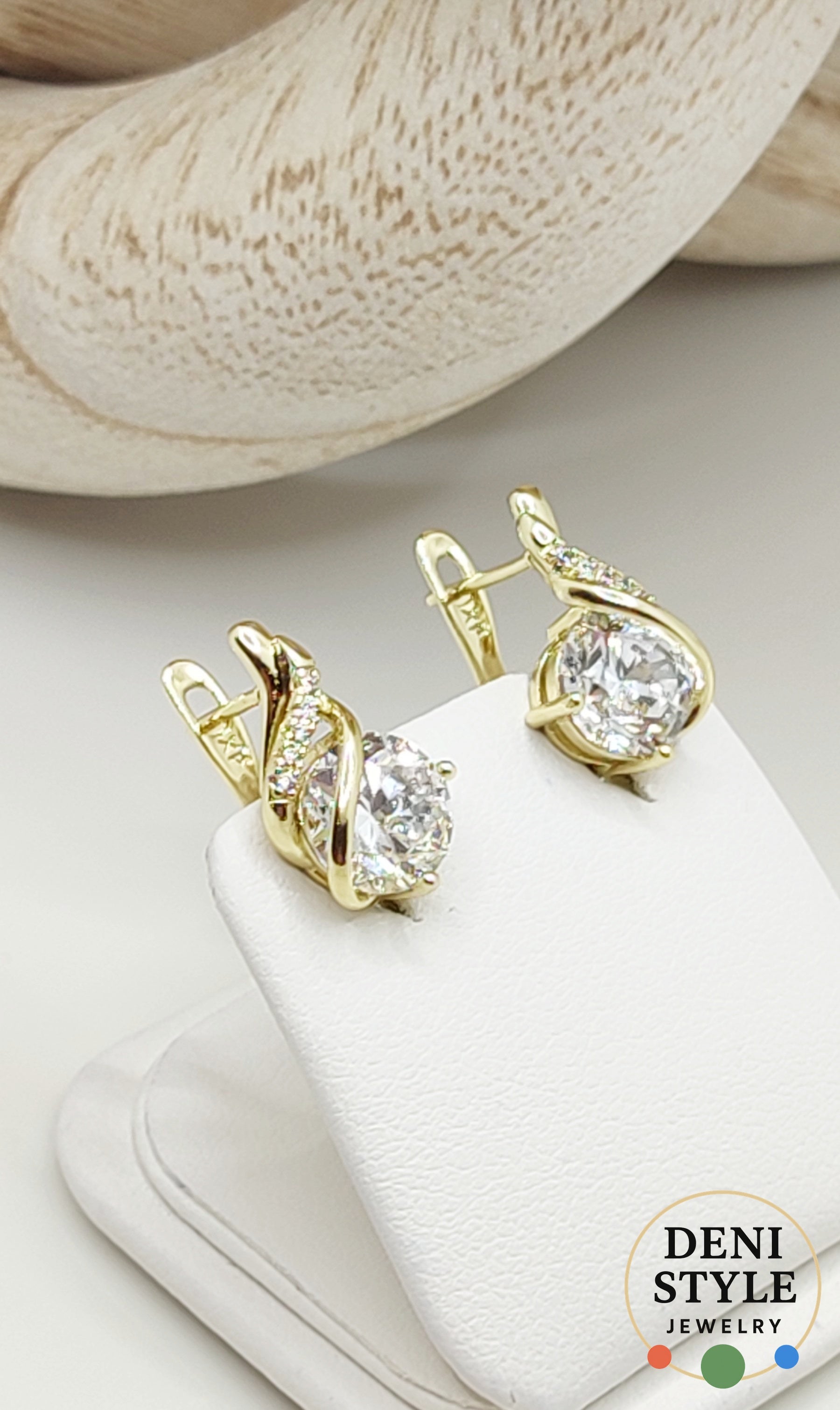 Kristályos arany fülbevaló – modern elegancia. Fenséges csillogás minden alkalomra! Ez a gyönyörű arany színű fülbevaló nagy kristállyal és ívelt, köves díszítéssel igazi ékszercsoda! Tökéletes választás alkalmakra, de egy sima hétköznapot is feldob vele!
