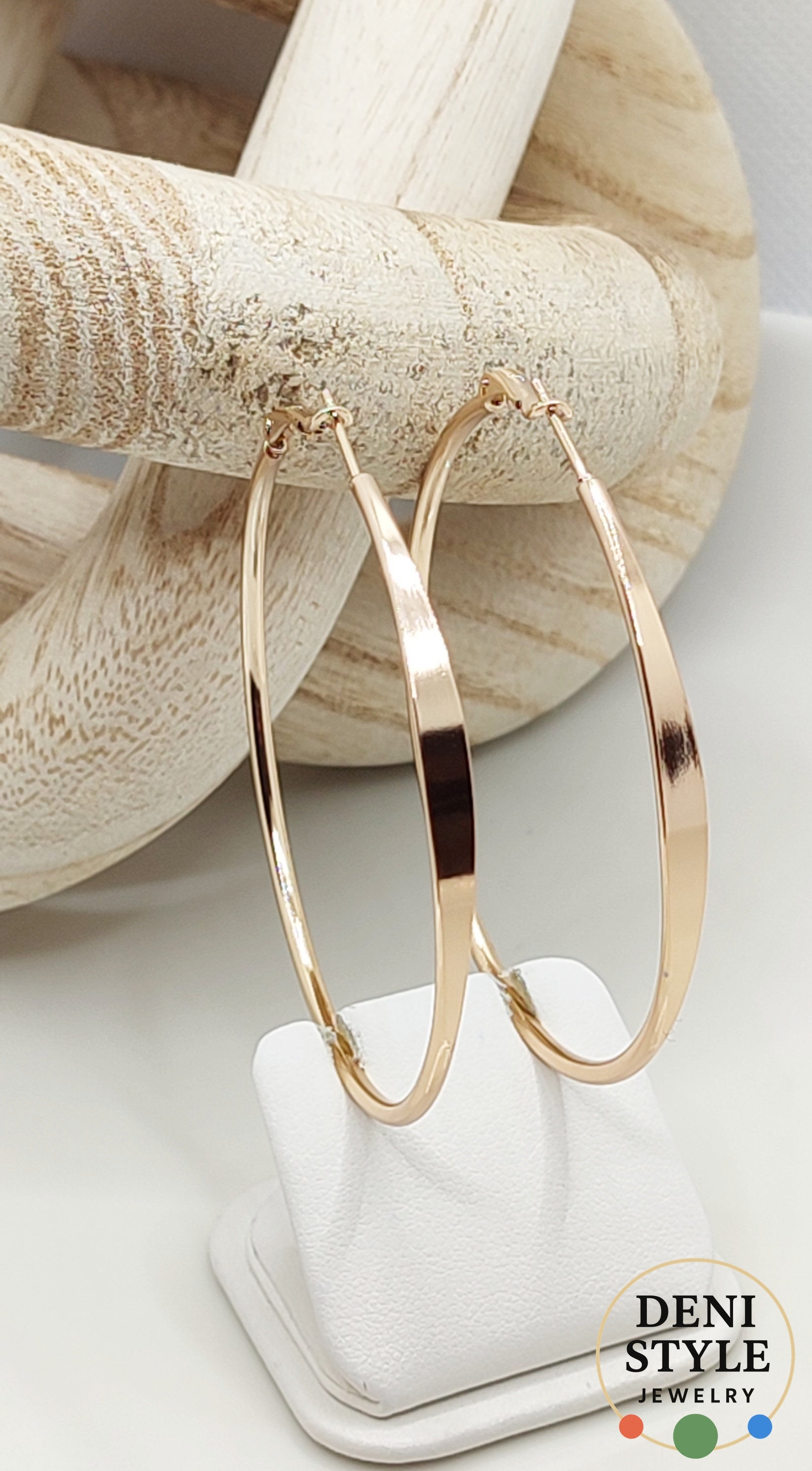 Klasszikus, nagy méretű aranyszínű karika fülbevaló, amely sosem megy ki a divatból. Letisztult formája minden öltözethez illik, legyen szó elegáns megjelenésről vagy hétköznapi viseletről. Antiallergén anyaga kényelmes és biztonságos választás érzékeny fülűek számára is.