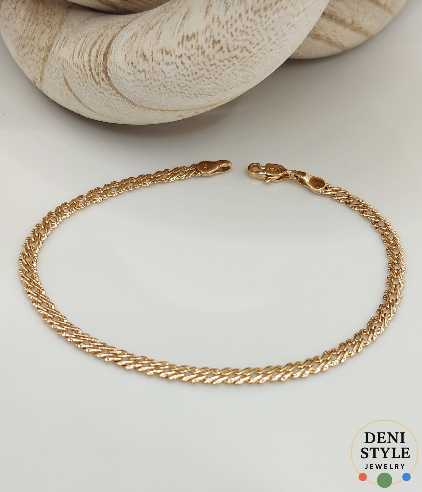 Elegáns, finoman csillogó arany hatású karkötő, amely időtálló mintázatával valódi klasszikus darab.