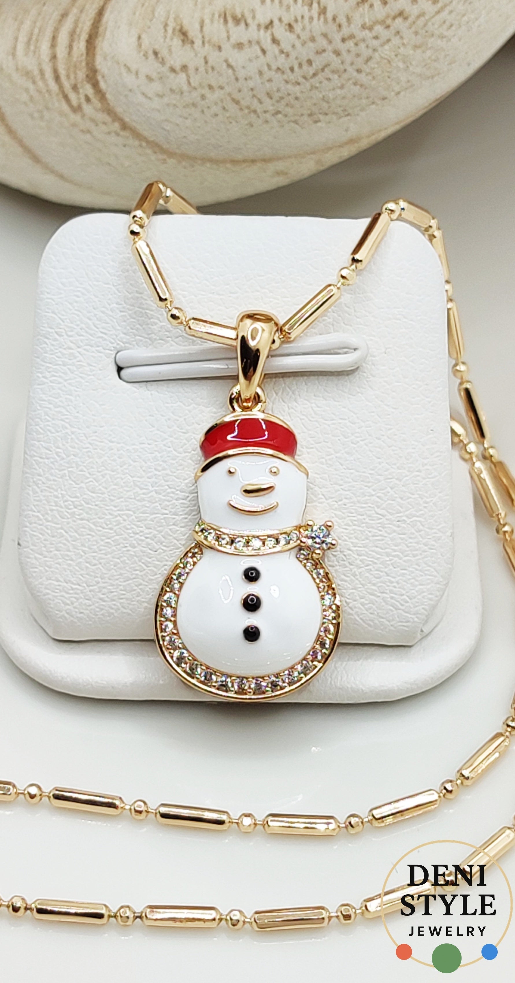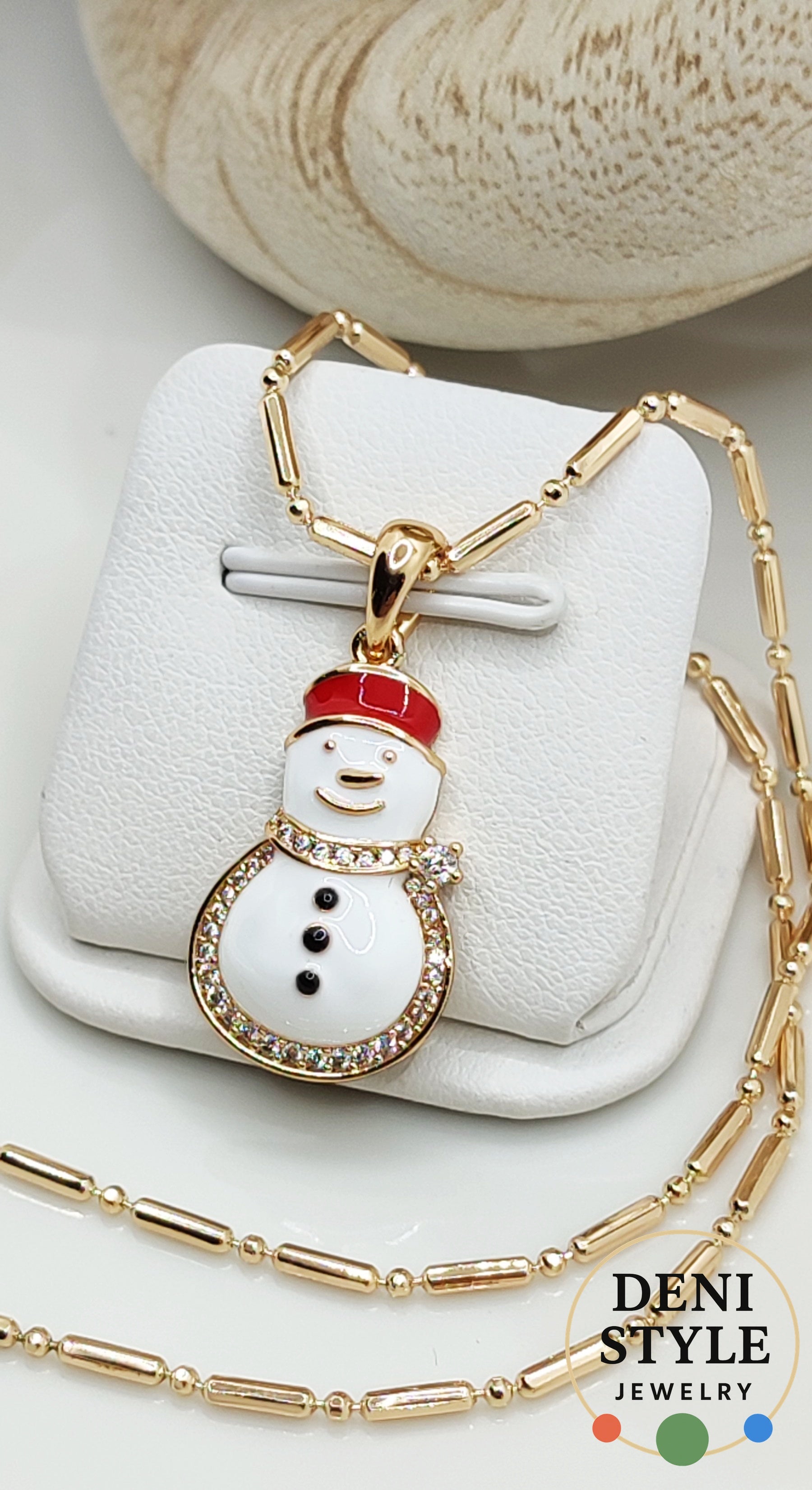 Vidám, karácsonyi hangulatot idéző hóember medál 18K aranyszínű láncon.