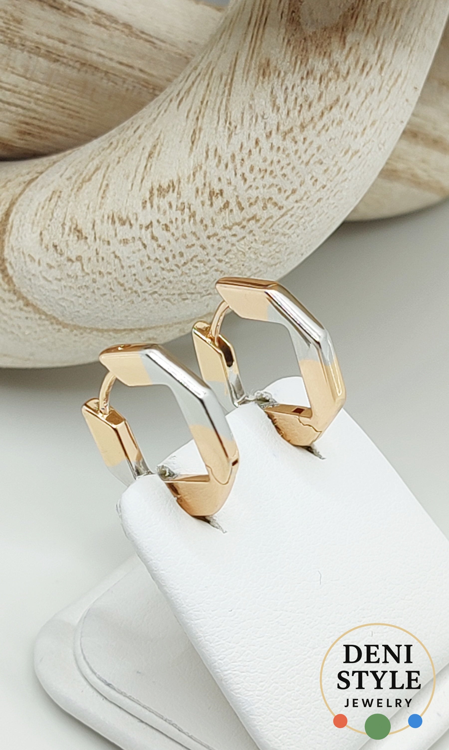 Ez a fülbevaló letisztult formavilágát a fényesen csillogó arany és ezüst szín találkozása teszi különlegessé.