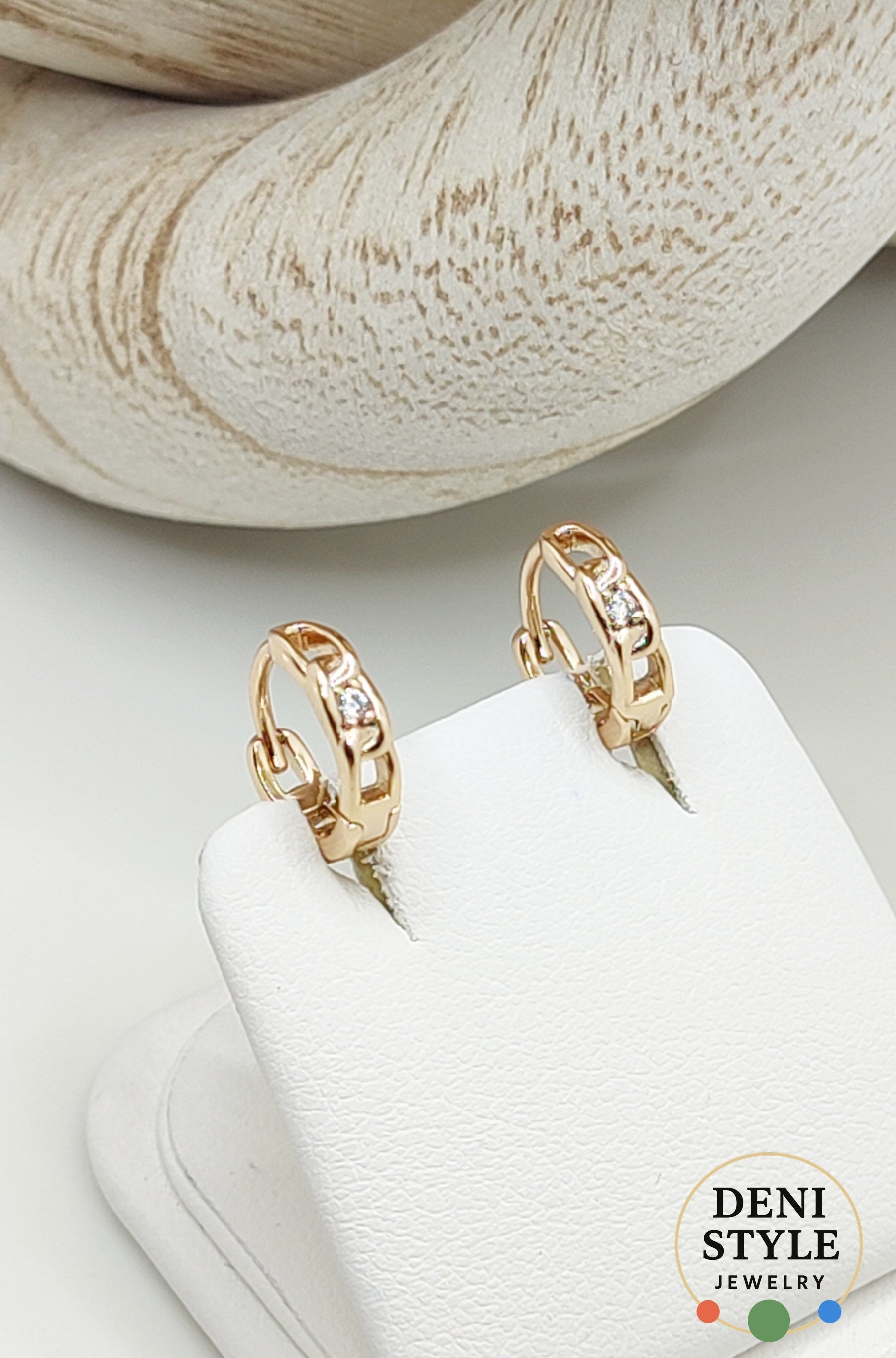 Ez egy pár antiallergén, 18 k színű karika fülbevaló. A fülbevaló közepén egy apró, fehér cirkónia kő van, mellette pedig kivágott minták teszik különlegessé. Ez a letisztult forma jól illik a mindennapi viselethez.