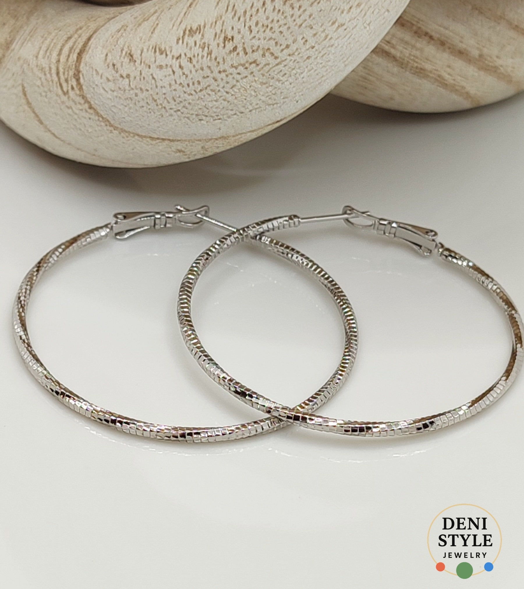 Karika fülbevaló letisztult formájával és finoman csillogó felületével az elegancia kortalan szimbóluma. Rhodium bevonata fényes, tükörsima hatást kölcsönöz, miközben védelmet nyújt a kopás és elszíneződés ellen. Könnyű, antiallergén kialakítása egész napos kényelmet biztosít, így tökéletes választás mindennapi viselethez és alkalmi megjelenéshez is.