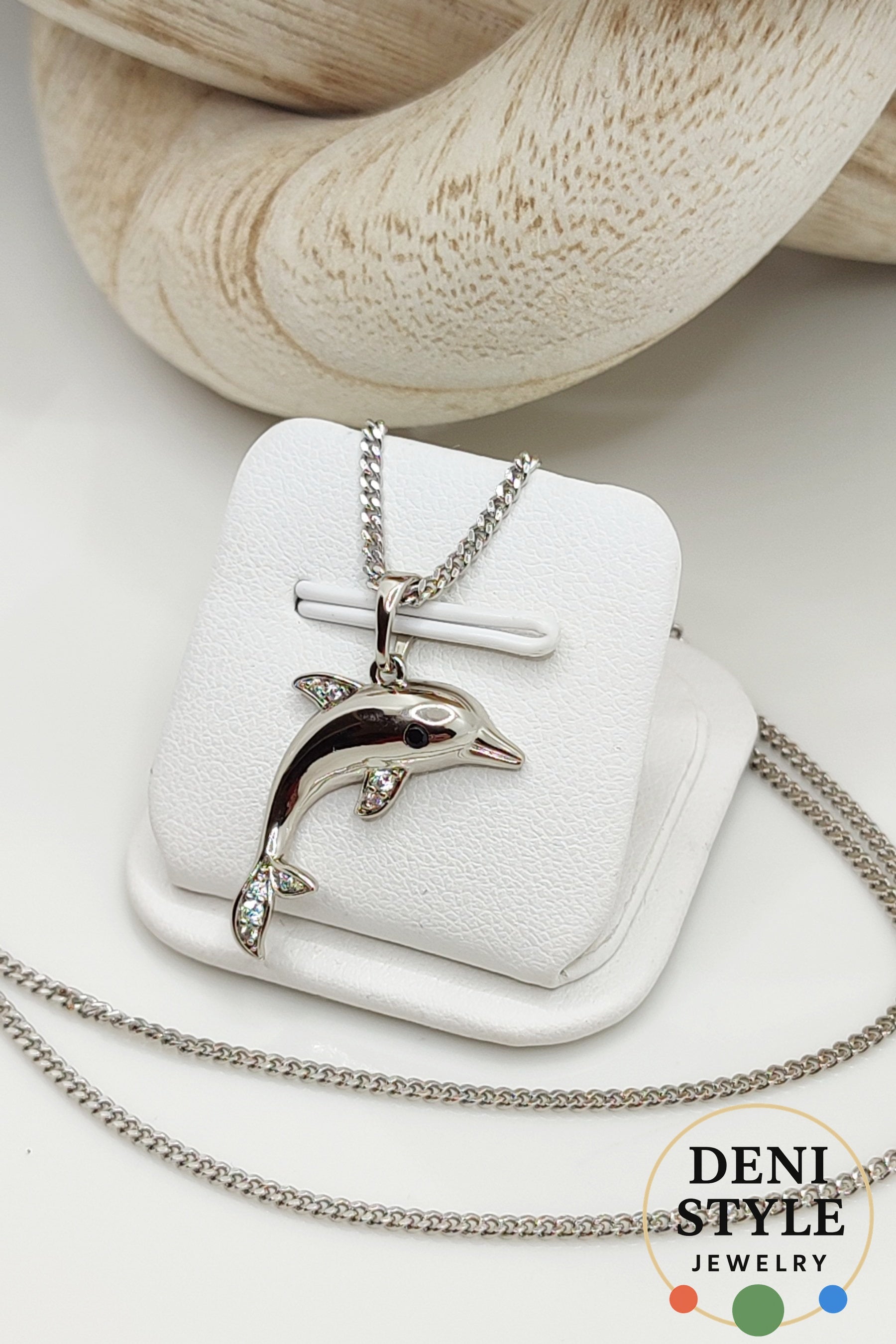 A nyaklánc a tenger szabadságát és tisztaságát idézi meg. Elegáns, ezüstszínű delfin medálja apró kristályokkal díszített, amelyek finoman megcsillannak a fényben. Antiallergén anyagból készült, így érzékeny bőrűek számára is ideális választás. Különleges darab, amely a természet és a harmónia szerelmeseinek tökéletes kiegészítője.