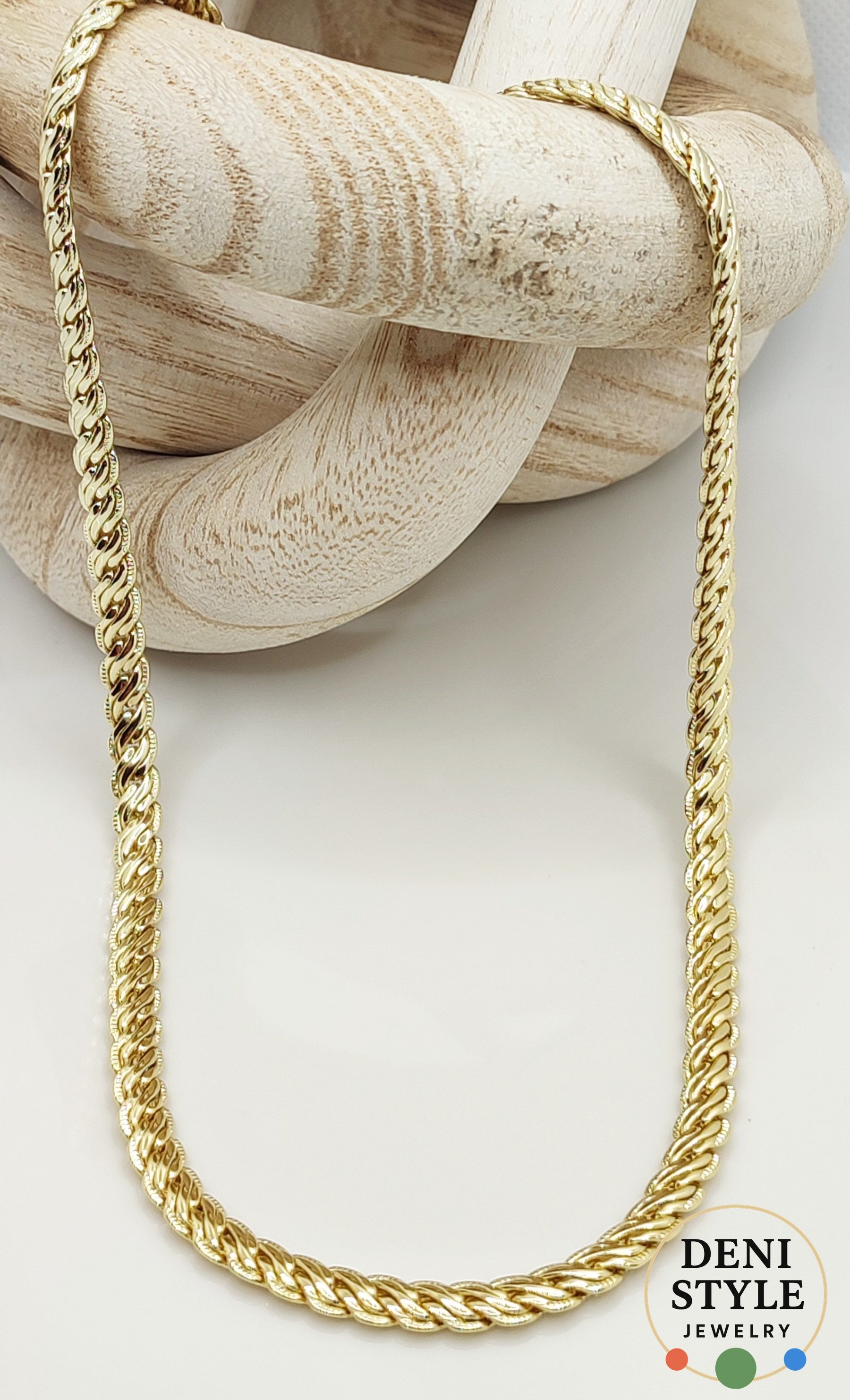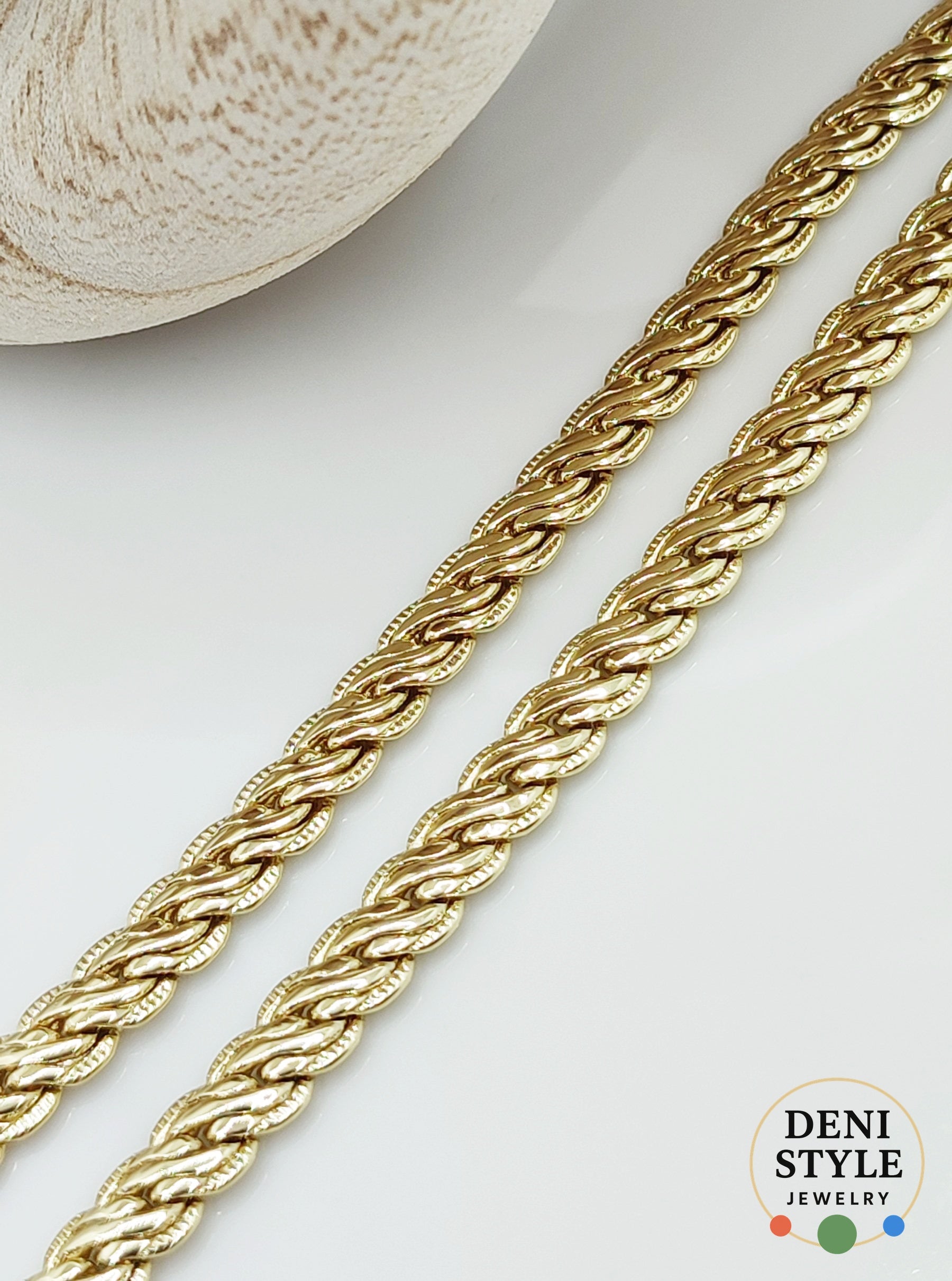 A Montero nyaklánc klasszikus, csavart szemű kialakítása erőt és eleganciát sugároz. 14K színű, antiallergén anyaga hosszan megőrzi aranyló fényét, miközben ellenáll a kopásnak és elszíneződésnek. Letisztult stílusa miatt tökéletes választás, akik a tartós, minőségi megjelenést kedvelik.