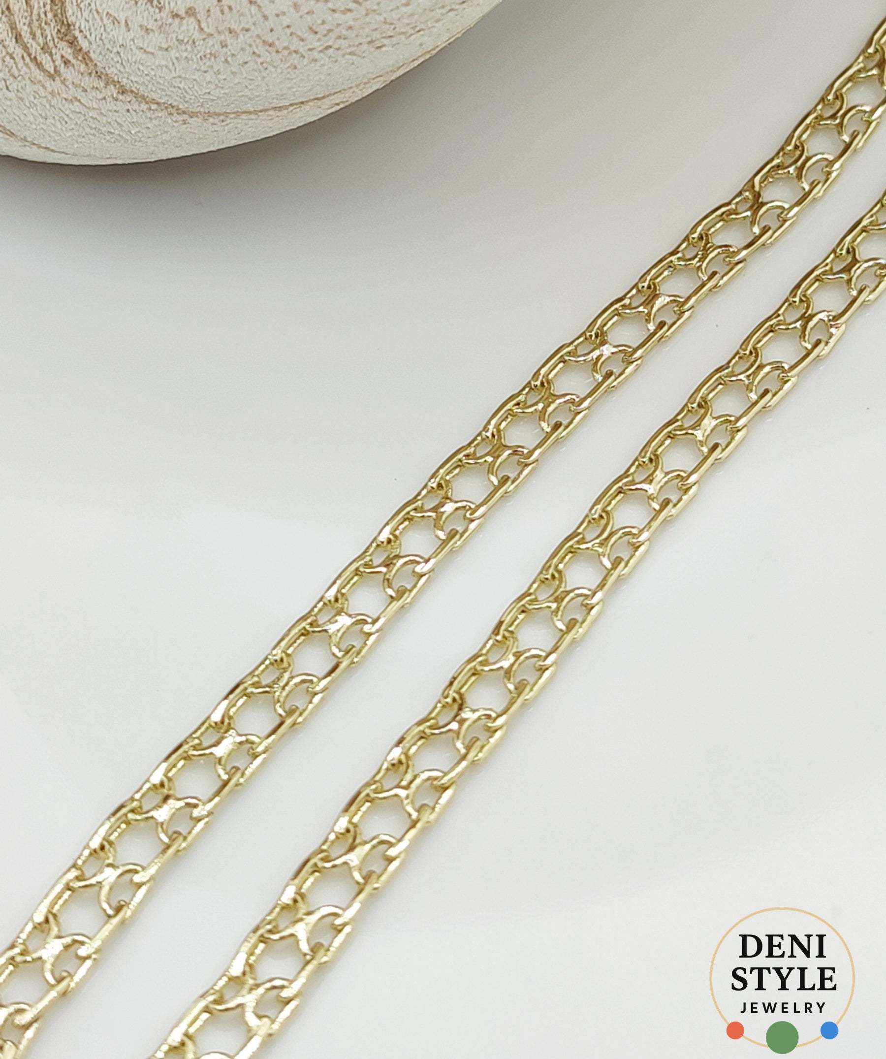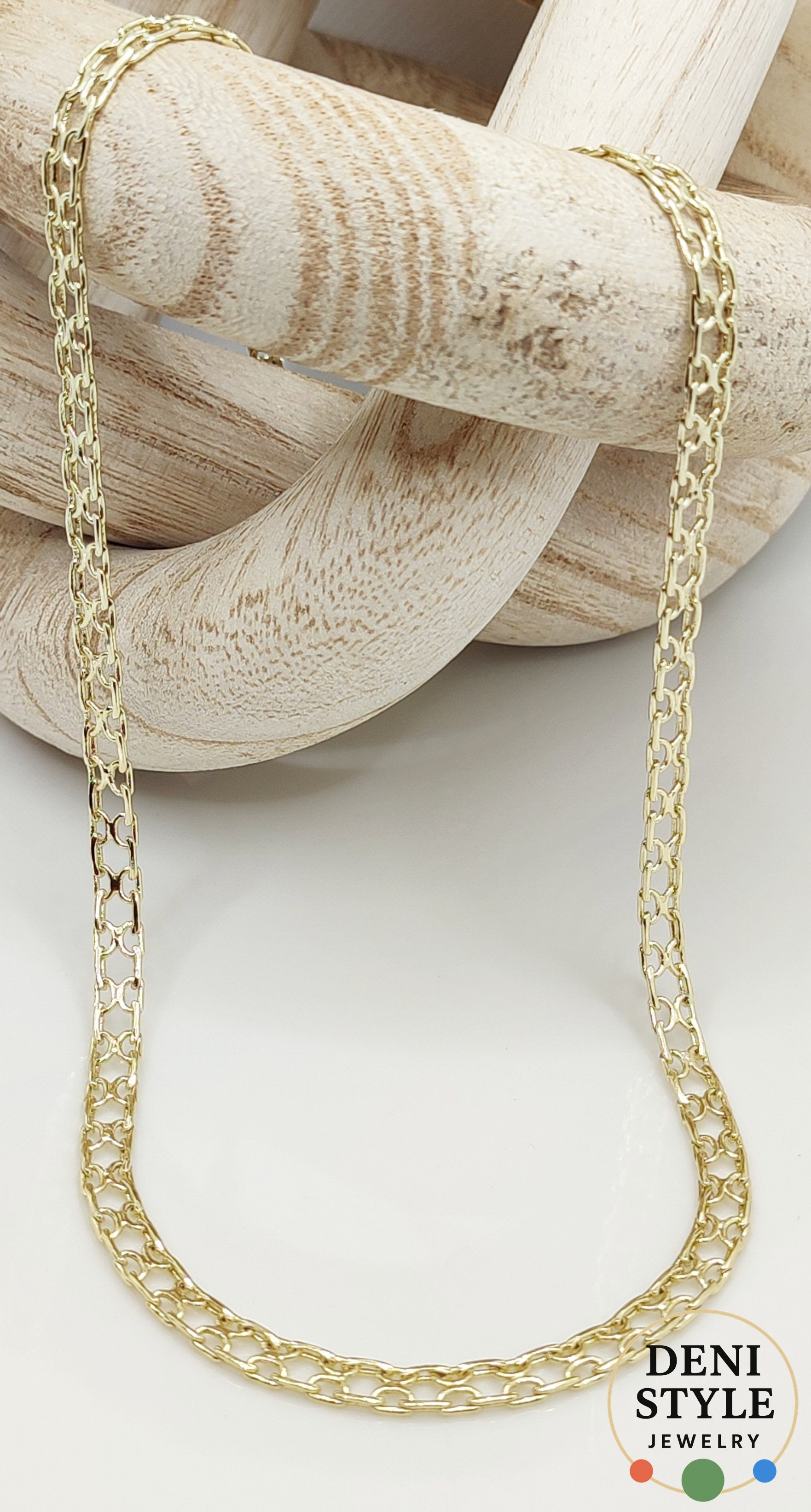 A nyaklánc klasszikus aranyszínű láncszemeivel a letisztult elegancia megtestesítője. Finom, mégis karakteres kialakítása önmagában is gyönyörű, de medállal párosítva is tökéletes választás. Antiallergén anyagból készült, így érzékeny bőrűek számára is biztonságos. Stílusos, időtálló darab, amely minden korosztály számára eleganciát sugároz