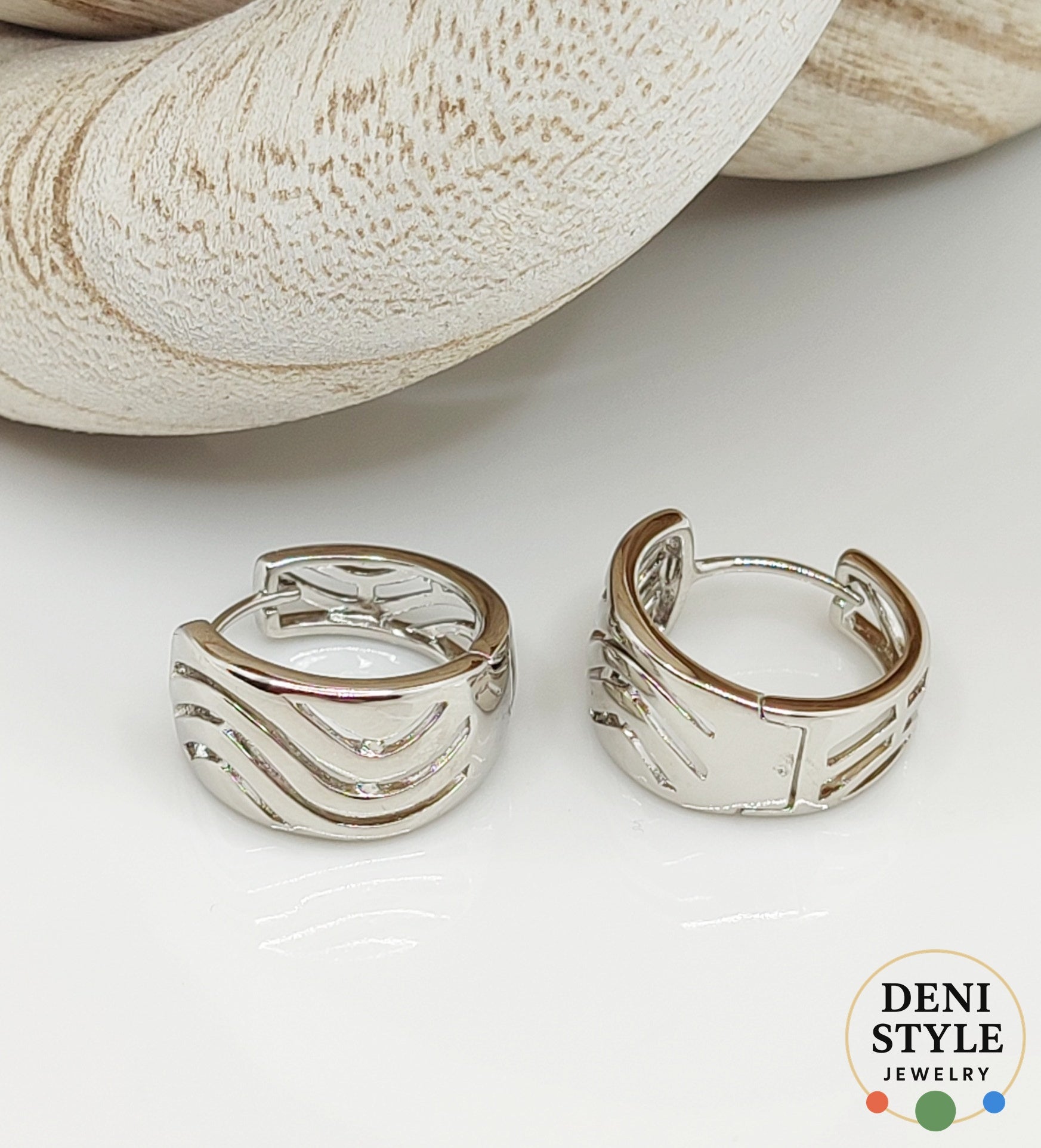 Modern és kifinomult antiallergén fülbevaló, amelyet a finom hullámvonalak tesznek különlegessé. Ezüst színének köszönhetően bármilyen öltözékhez könnyedén illeszthető. Kényelmes viselet, amely nem irritálja a bőrt, így mindennapokra és alkalmi megjelenéshez is tökéletes választás.