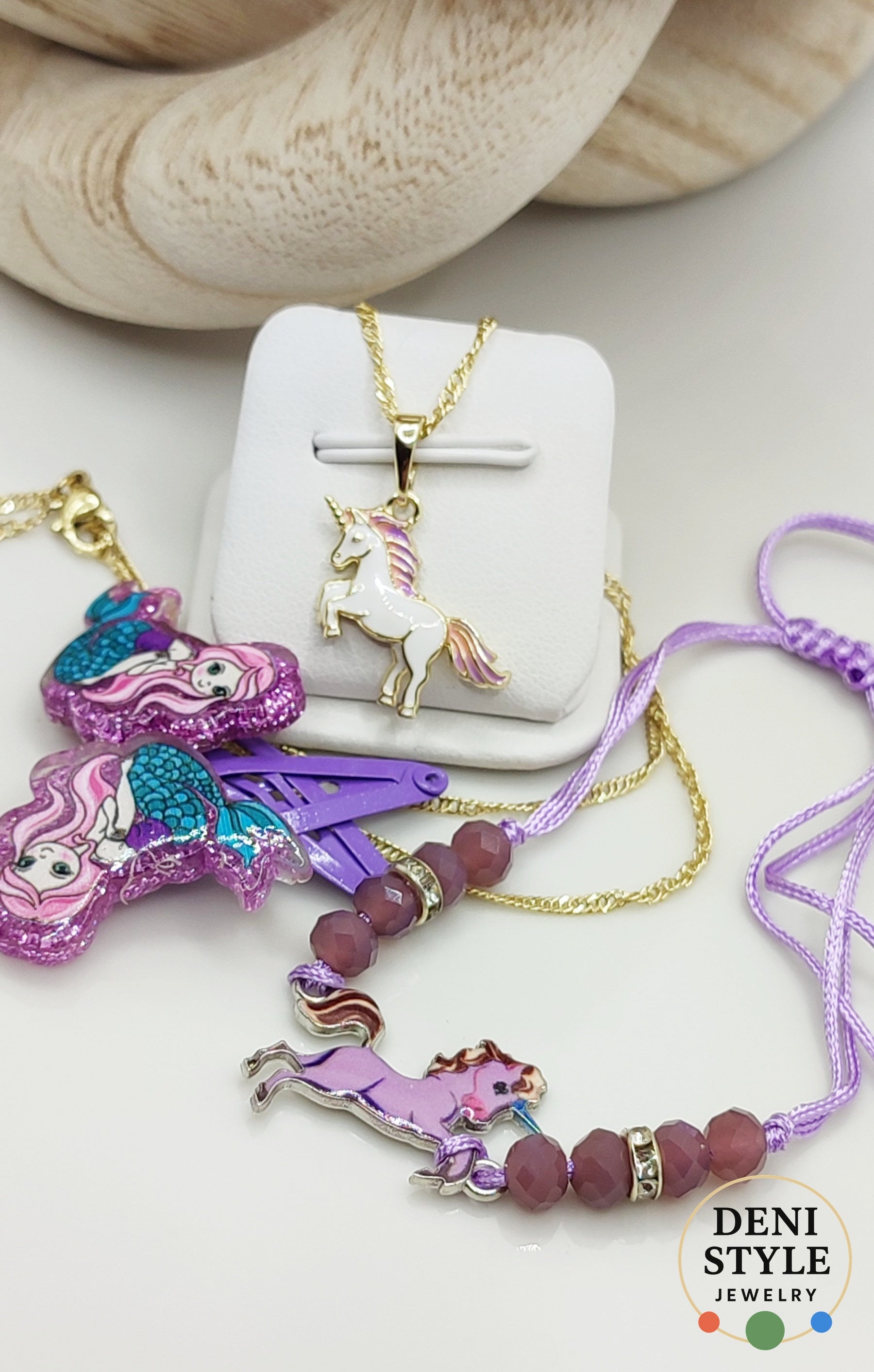 Az ékszerszett egy varázslatos, pasztell árnyalatokban tündöklő szett, amely a gyermeki fantázia világát idézi. Az antiallergén, aranyszínű unikornis medál és a lila árnyalatú unikornis divatkarkötő finoman csillogó részletekkel készült kislányok számára, akik imádják az álomvilágot és a tündéri részleteket. Egy kedves ajándék, ami örömet és mosolyt hoz viselőjének.