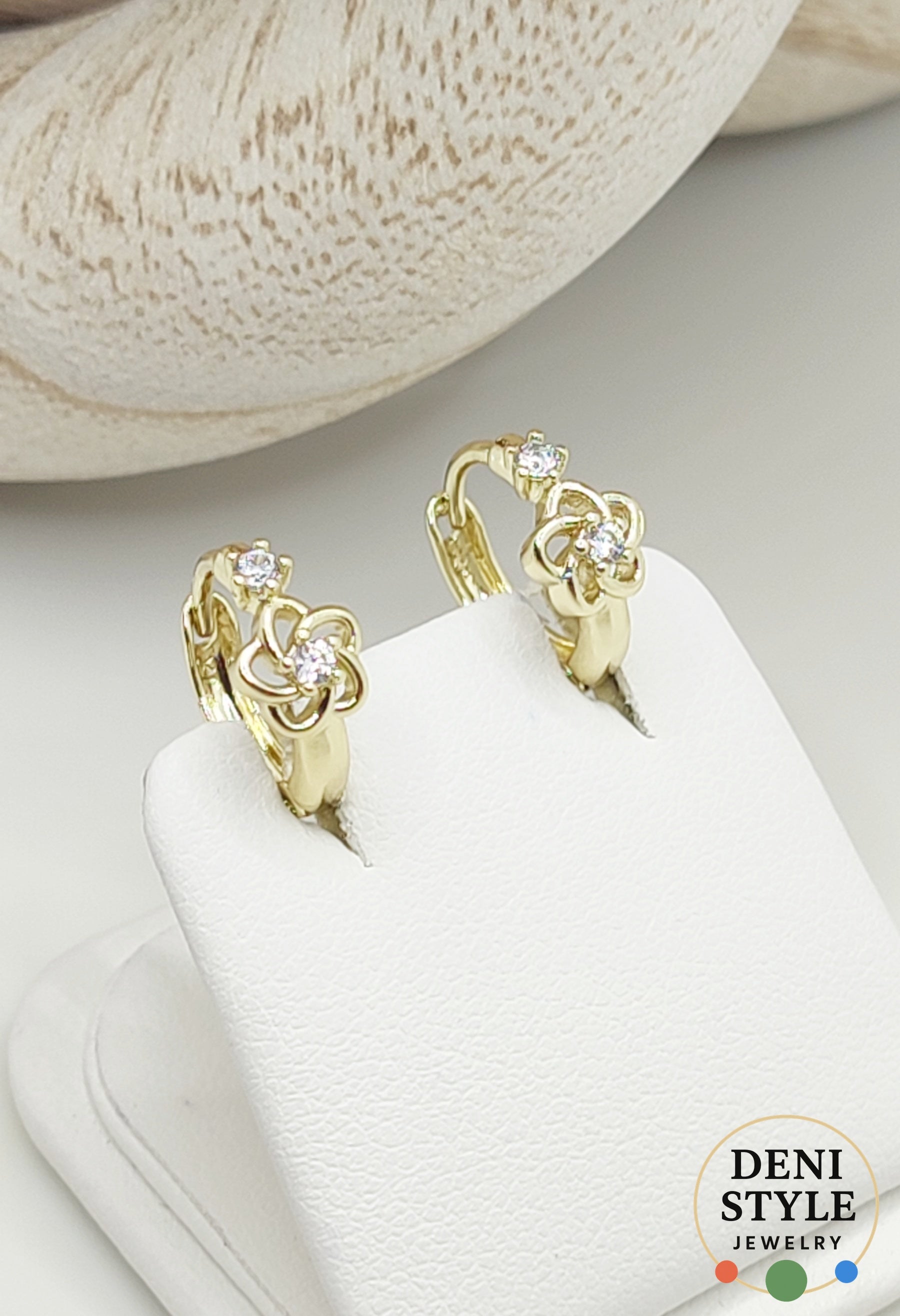 Könnyed, csillogó és finoman kidolgozott antiallergén gyermek fülbevaló virágos motívummal és apró kristálydísszel.