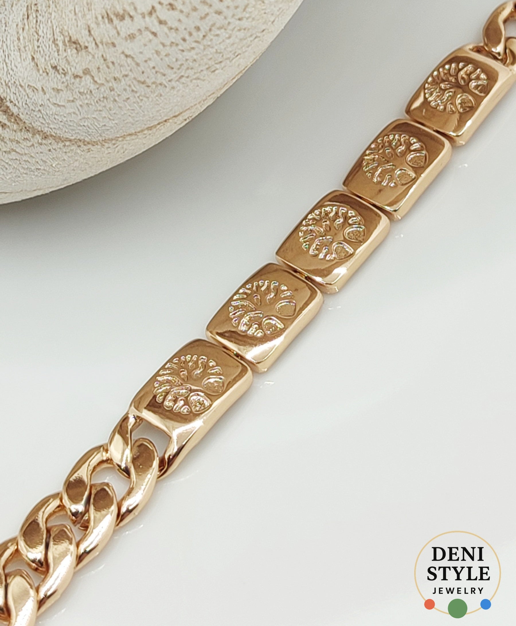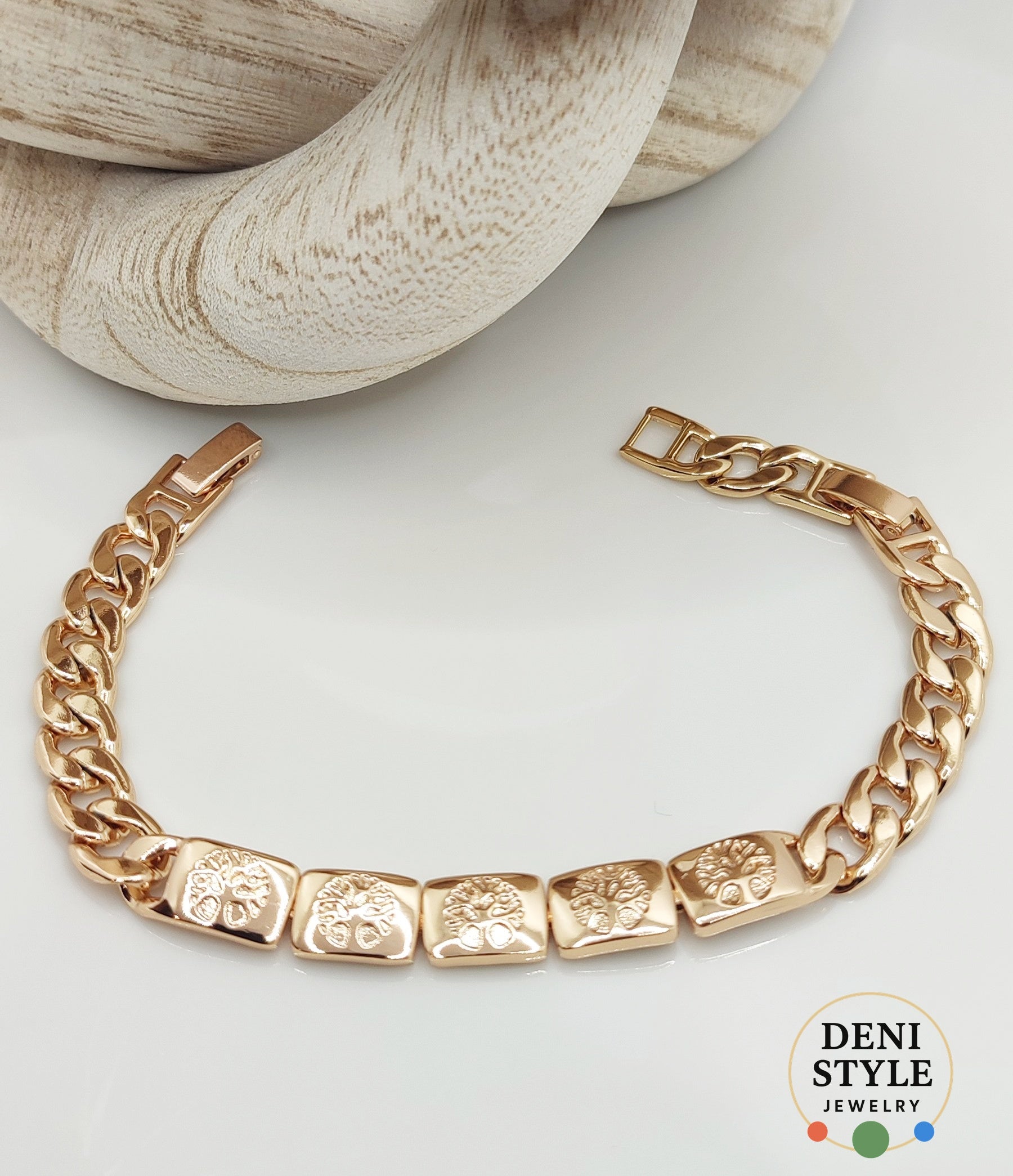 Elegáns, aranyszínű karkötő Életfa motívummal, amely a növekedést, stabilitást és az újrakezdés erejét szimbolizálja. Letisztult, mégis karakteres megjelenést ad, így hétköznapi és alkalmi viselethez is tökéletes választás. Kényelmes, tartós, antiallergén kivitel, amely hosszú távon is megőrzi fényét és szépségét.