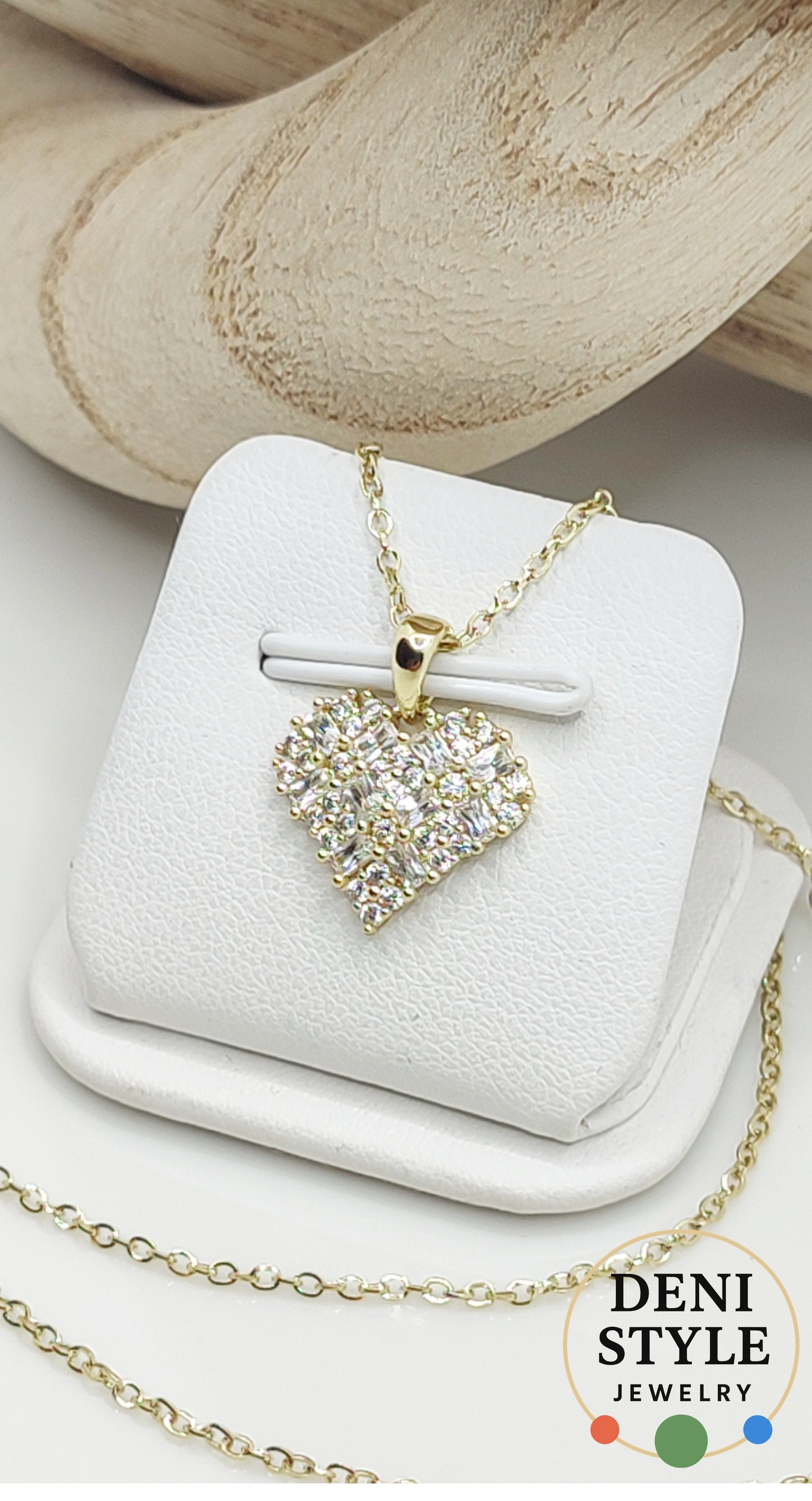 Ragyogó, 14K hatású aranyszínű nyaklánc különleges, kristályokkal kirakott szív medállal. Finom, elegáns fényét a minőségi, bőrbarát kivitel biztosítja, így fémérzékenyek számára is kényelmes viselet. Látványos, mégis ízléses darab, amely tökéletes ajándék és mindennapi kiegészítő egyaránt.