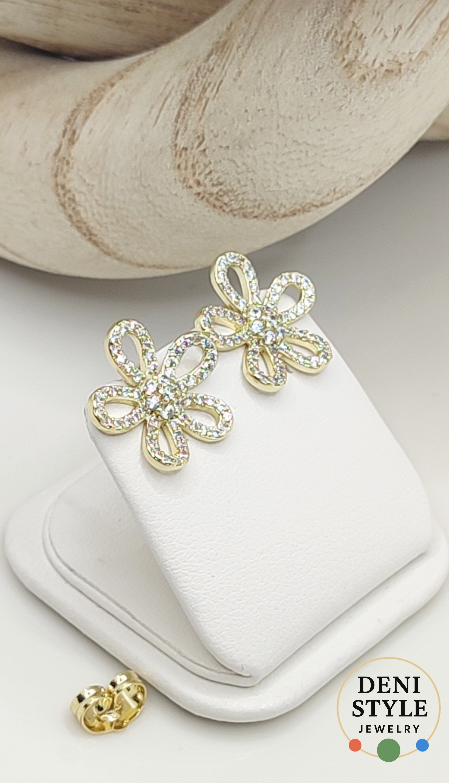 Ragyogó, nőies megjelenést adó virág formájú antiallergén fülbevaló, apró kristályos díszítéssel, amely finoman csillog minden mozdulatnál.