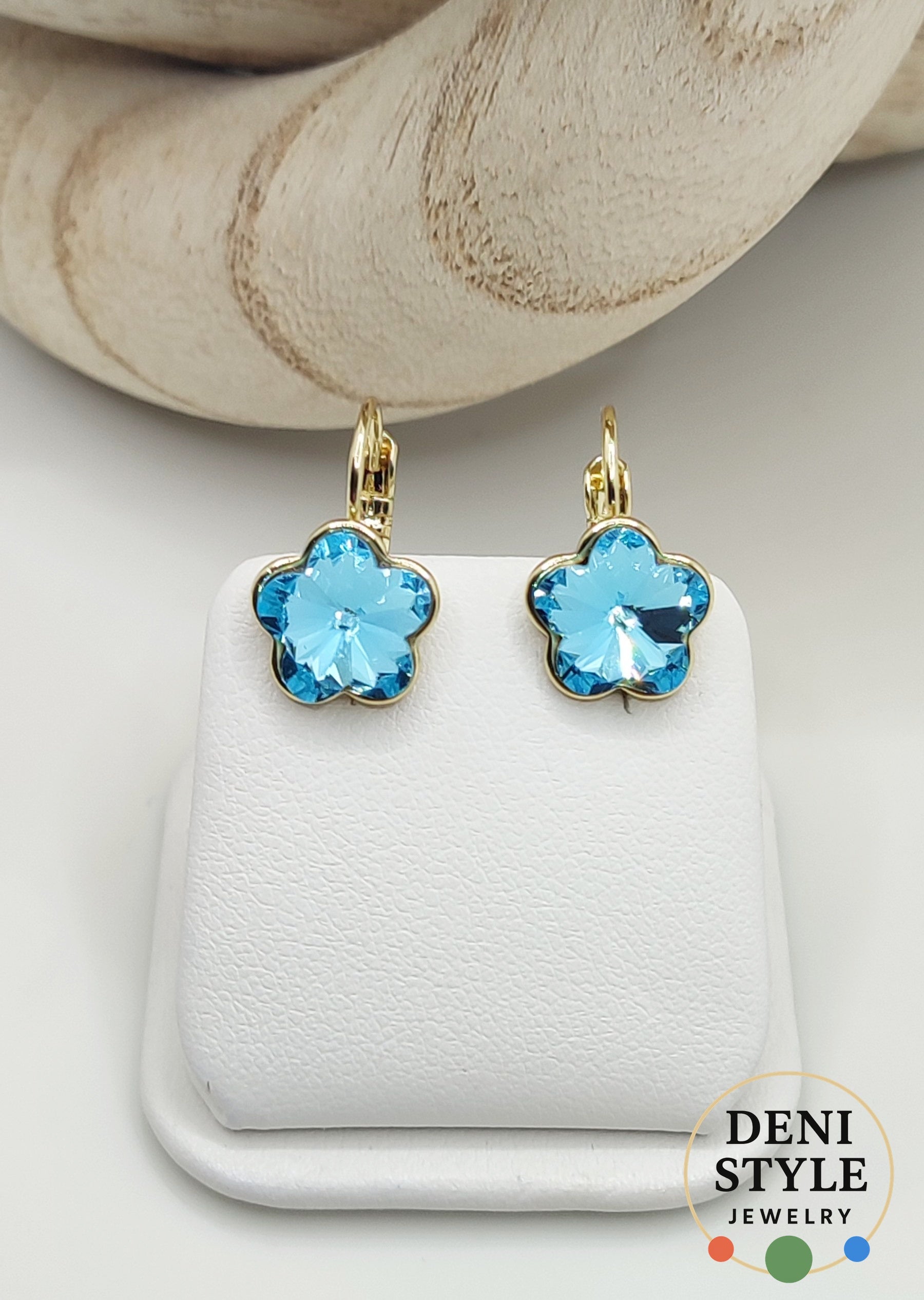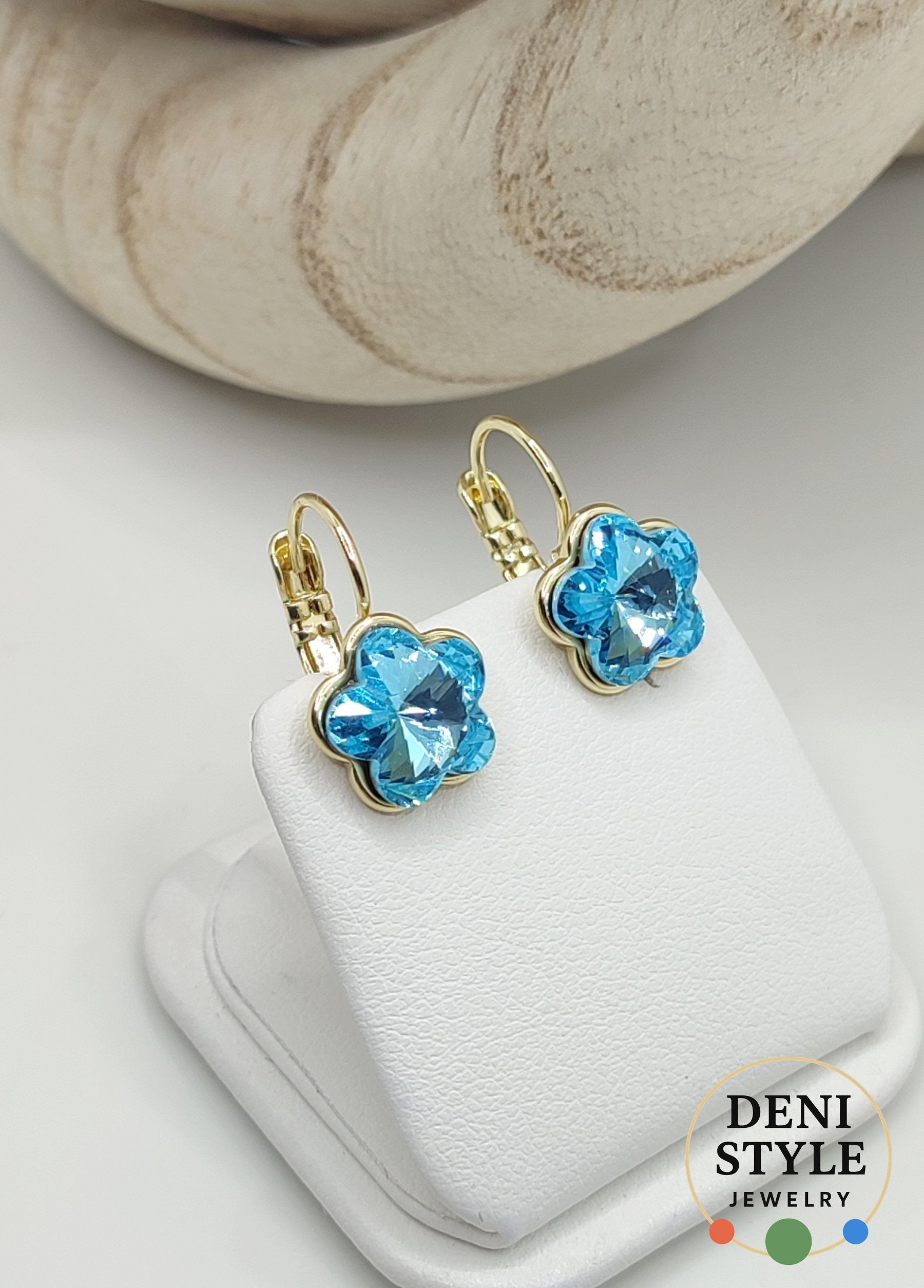 Elegáns, virág formájú fülbevaló ragyogó aquamarine kristályokkal és 14K aranyszínű foglalattal. Könnyű, kényelmes kialakítása mellett bőrbarát, fémérzékenyek számára is ideális választás. A magas minőségű kristályok tiszta, élénk fényt adnak, így a darab friss, nőies megjelenést biztosít mindennapi és alkalmi viselethez egyaránt.