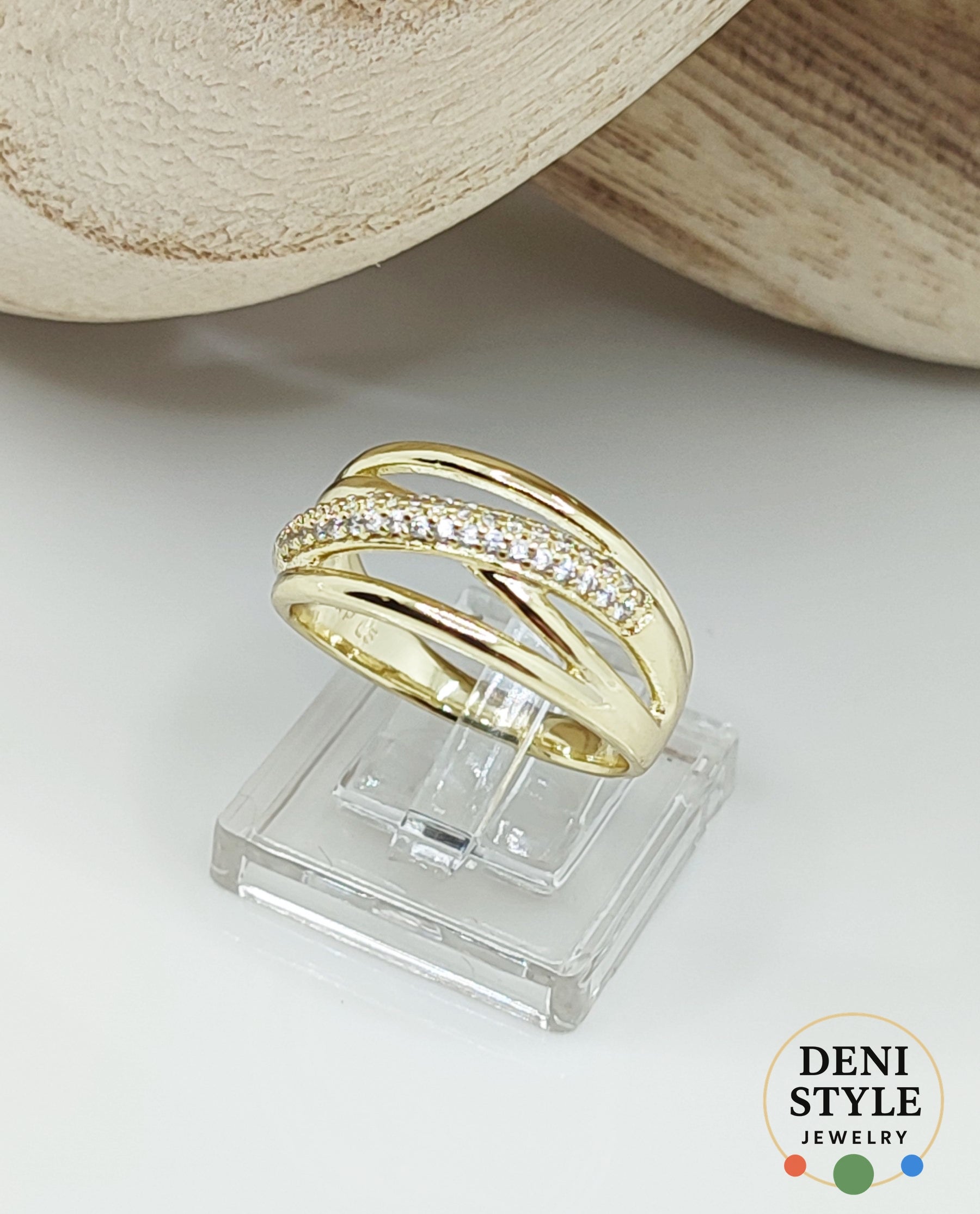 Antiallergén női gyűrű 14K arany színű kivitelben, csillogó köves díszítéssel.
