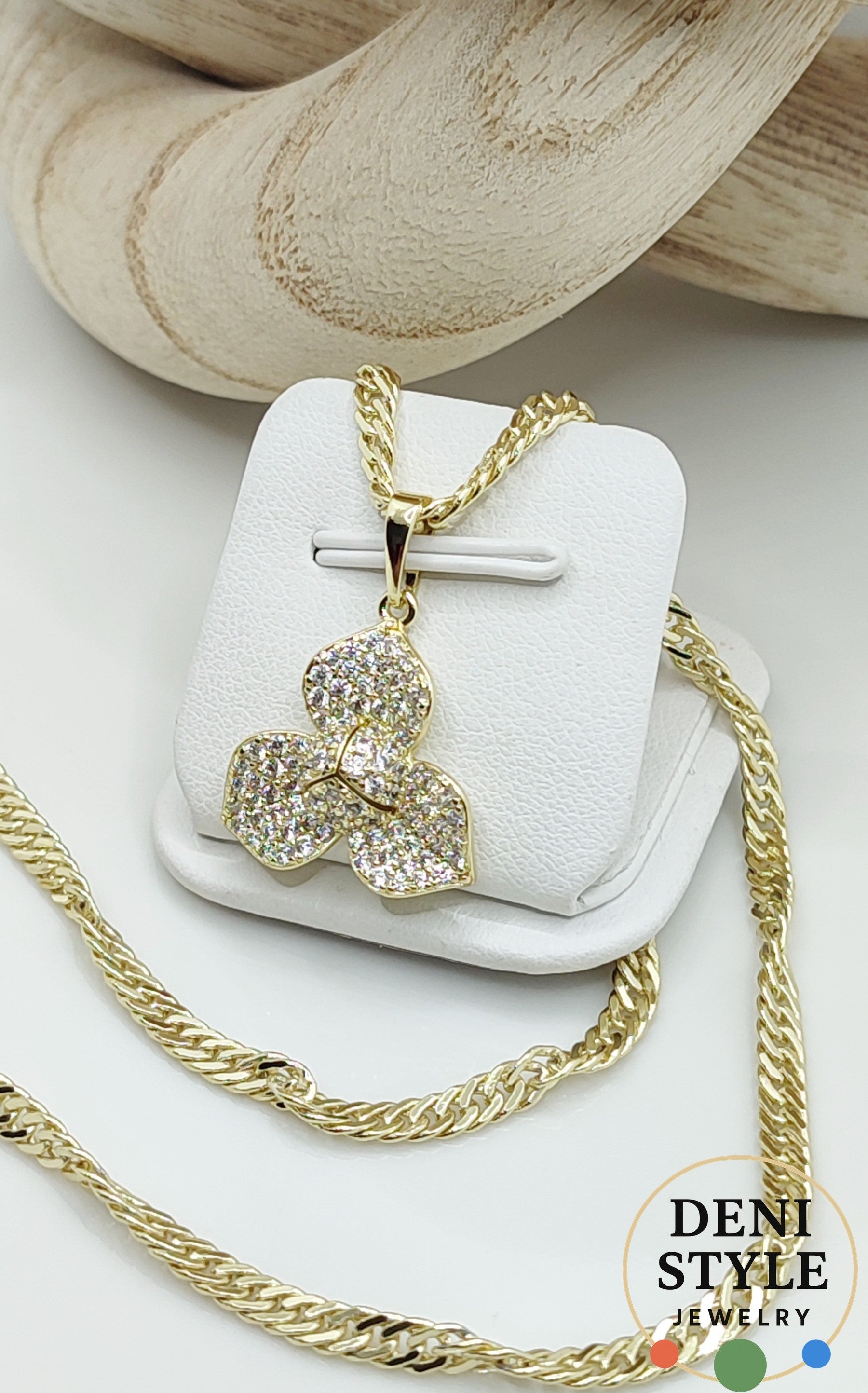Ez a 14K arany színű, antiallergén nyaklánc virág formájú kristályos medállal elegáns és látványos darab, amely tökéletes választás alkalmi és hétköznapi viselethez is.