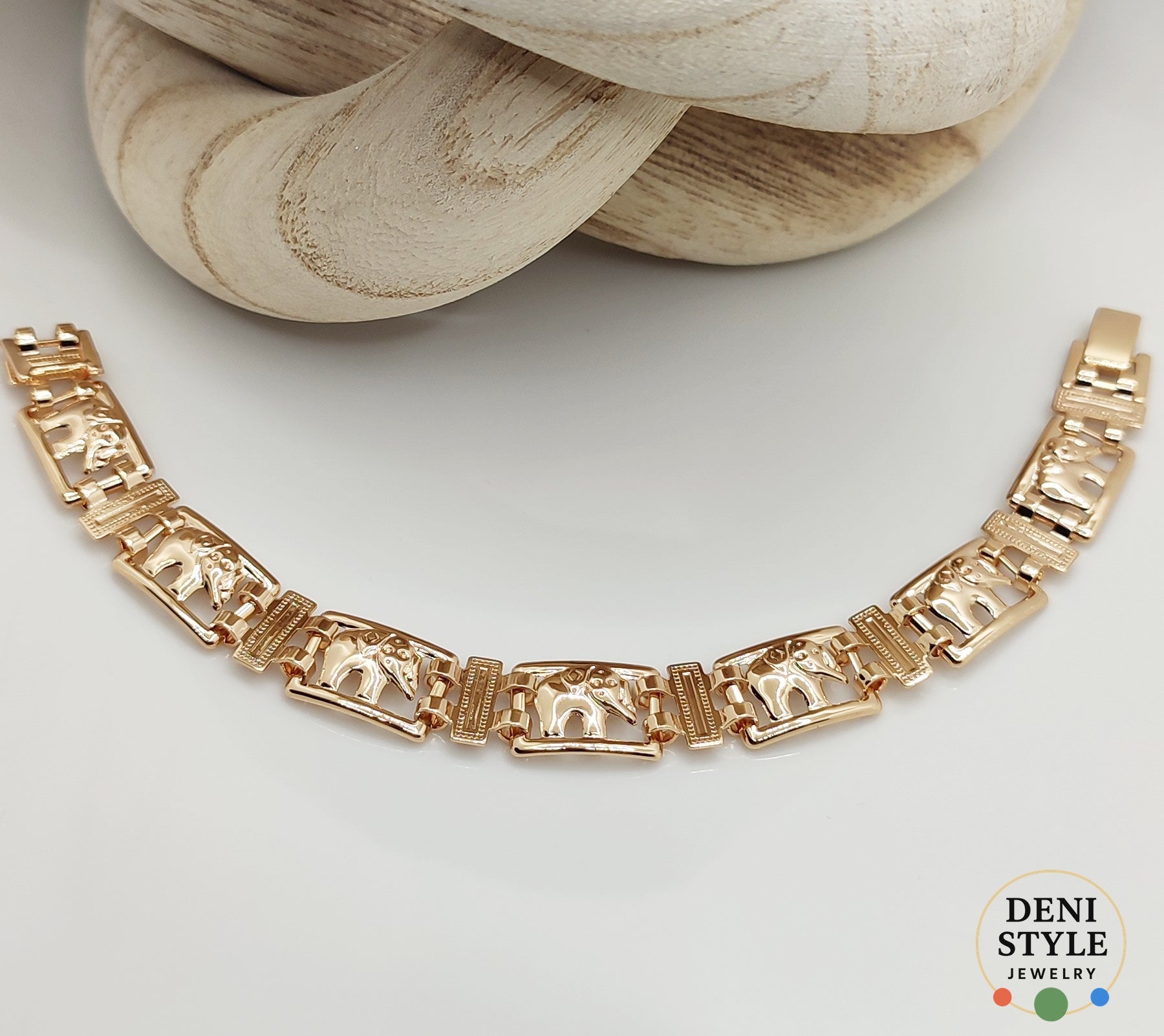 Antiallergén női karkötő 18K arany színű kivitelben, elefánt motívummal.
