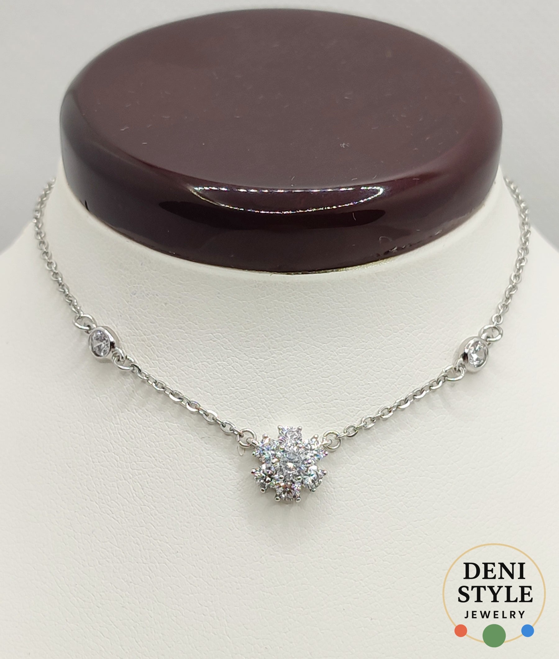 Antiallergén női nyaklánc rhodium bevonattal, elegáns ezüst színben.