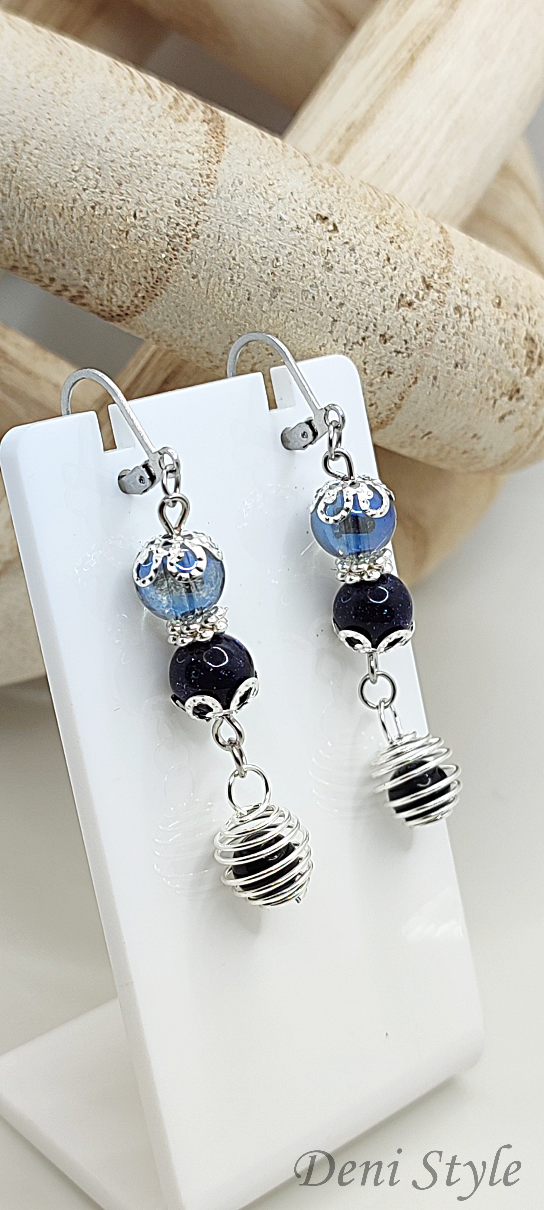Ásvány fülbevaló – kék aurakvarc és kék napkő kombinációja