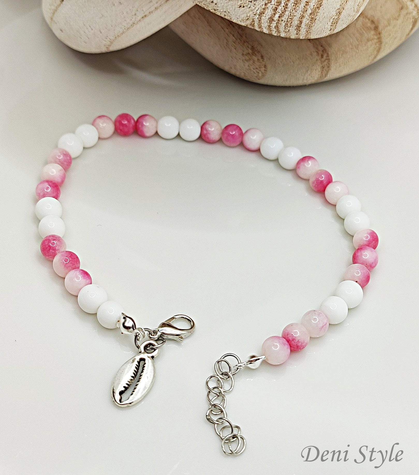 🦶✨ Költöztess strandhangulatot a mindennapokba ezzel a rózsaszín–fehér jáde bokalánccal!