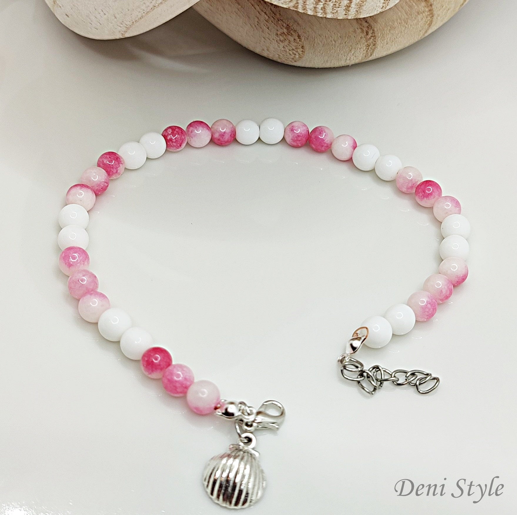 🦶✨ Költöztess strandhangulatot a mindennapokba ezzel a rózsaszín–fehér jáde bokalánccal!