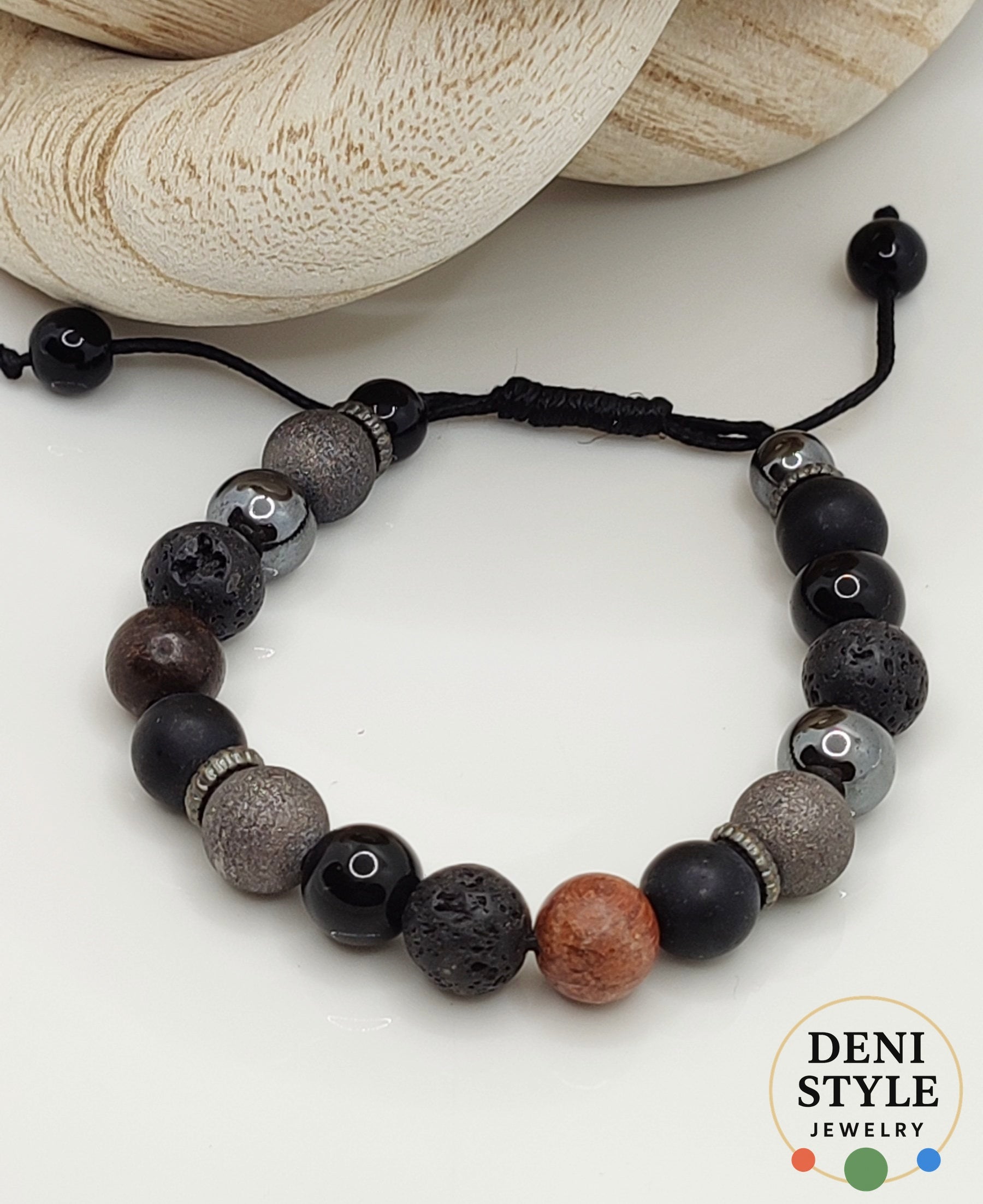 Állítható ásványkarkötő – lávakő, hematit és ónix kombinációja