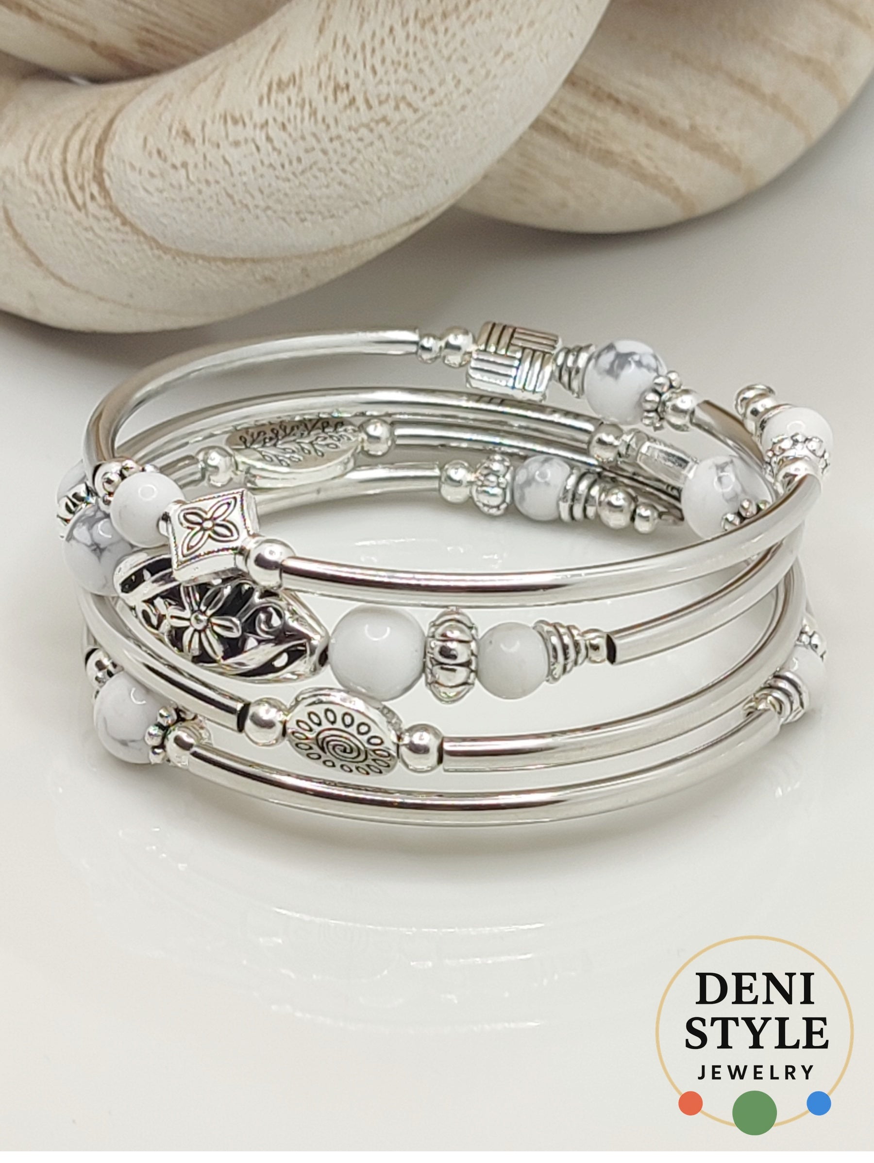A fehér howlit ásvány a nyugalom és a lelki harmónia köve, mely elegáns ezüst díszítésekkel kombinálva kifinomult megjelenést ad.